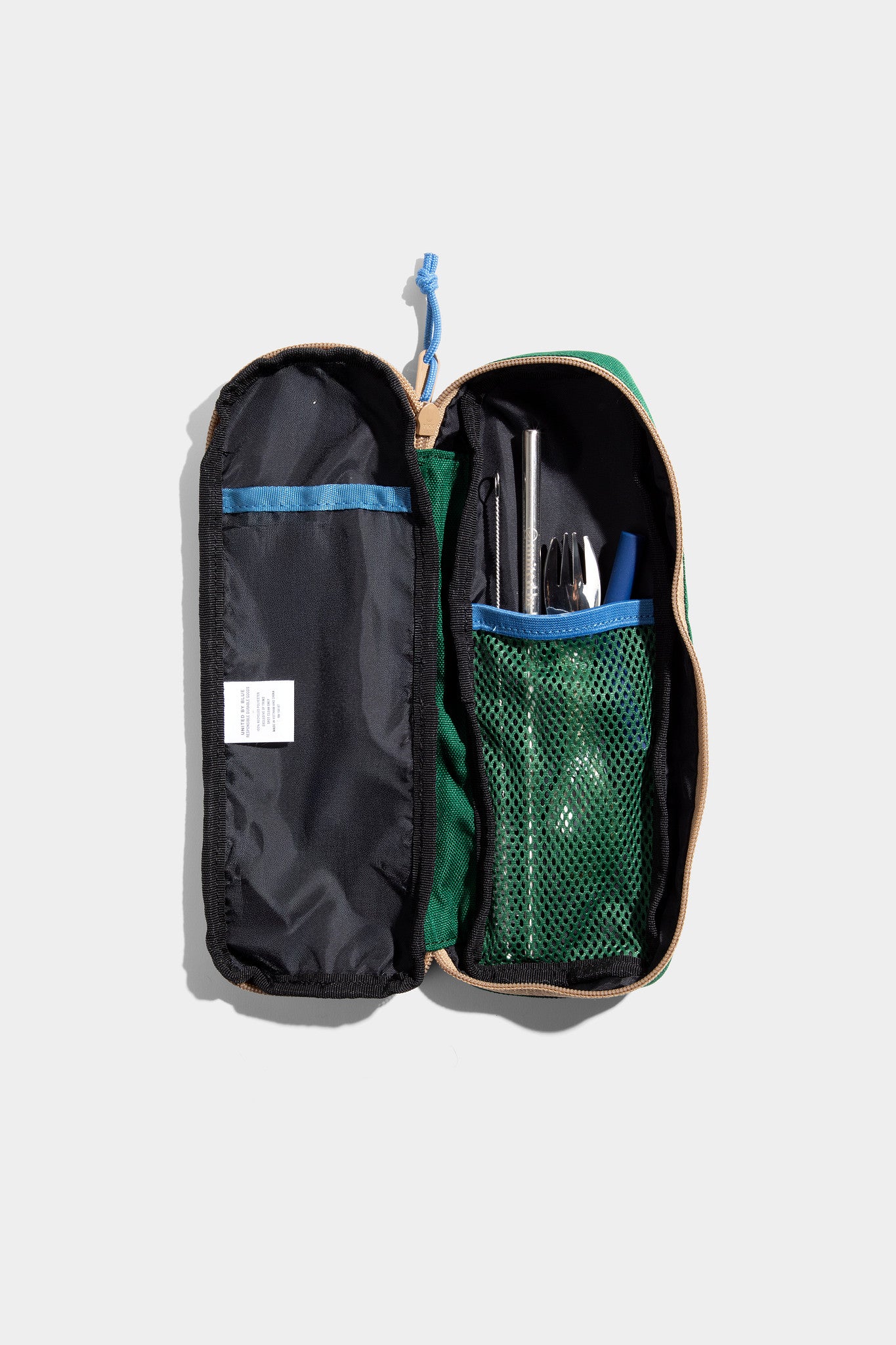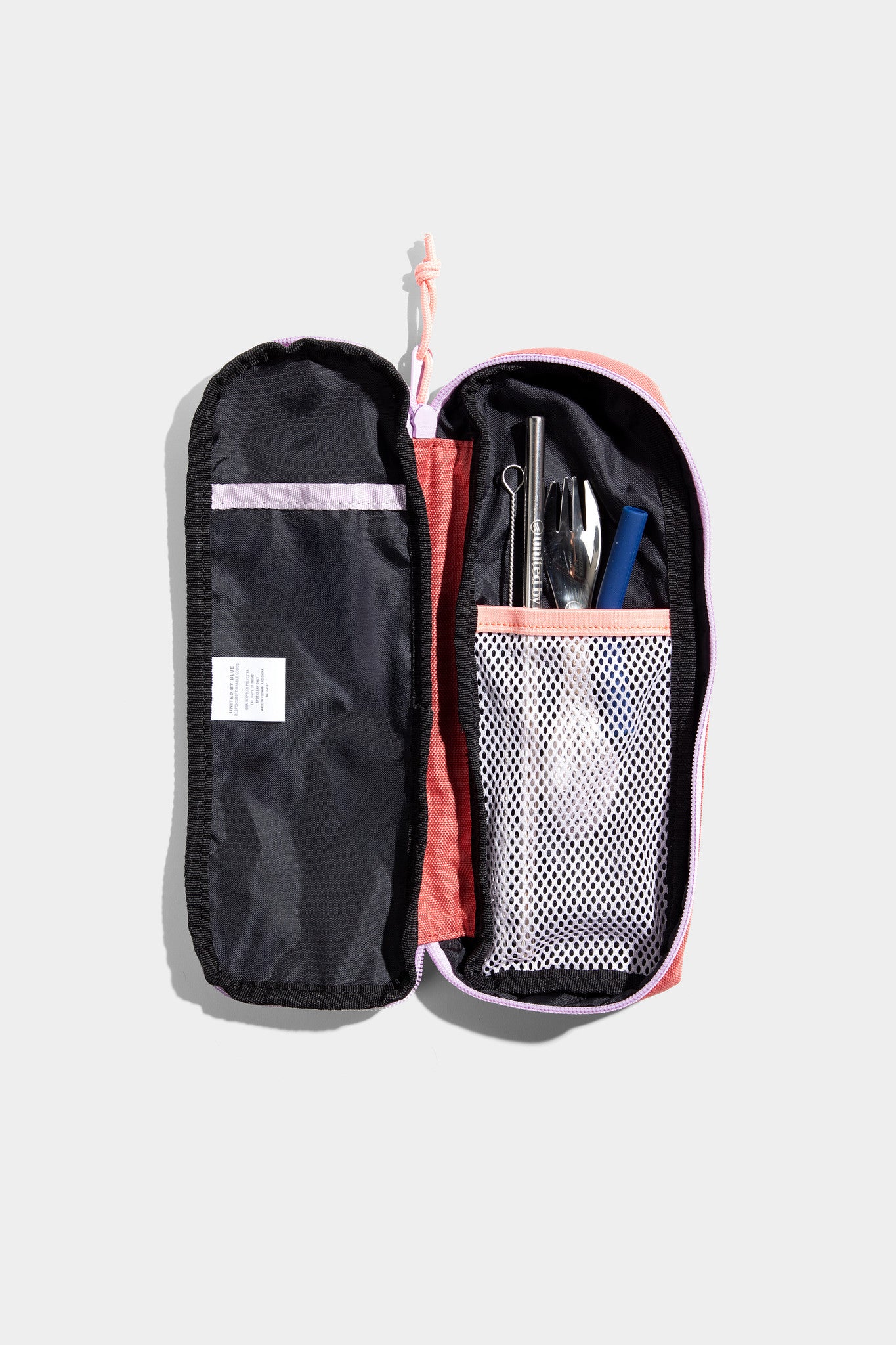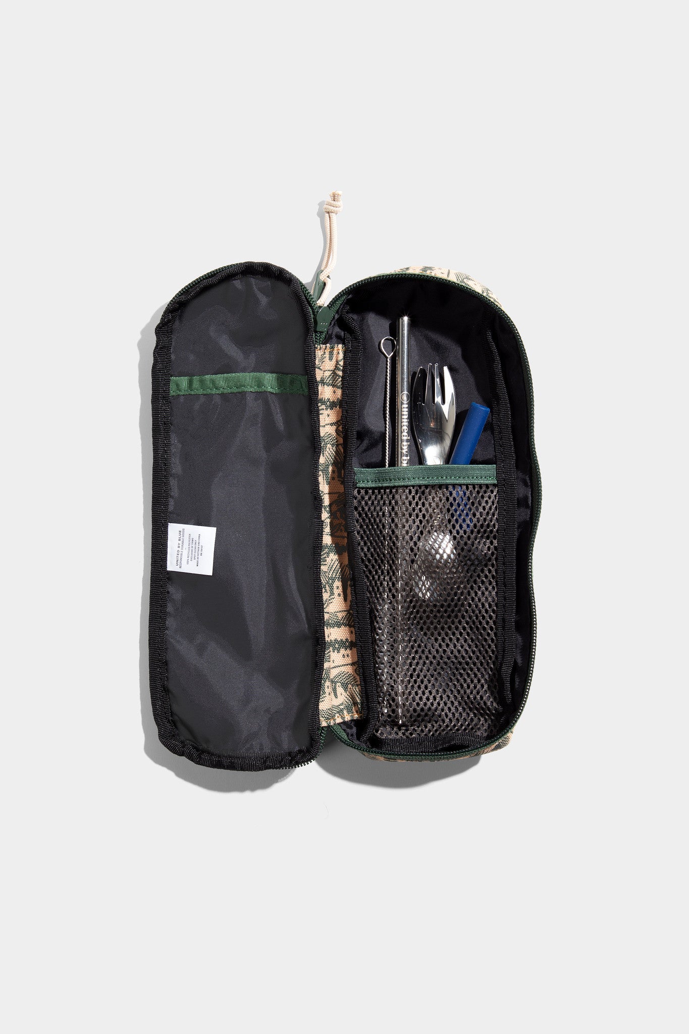 ¿Plástico de un solo uso para quién? El Utensil Pack es perfectamente portátil y viene con una pajita de acero inoxidable, una punta flexible de silicona, un cepillo para limpiar la pajita y un tenedor-cuchara de acero inoxidable, todo envuelto en un estuche protector de transporte hecho de plástico reciclado.