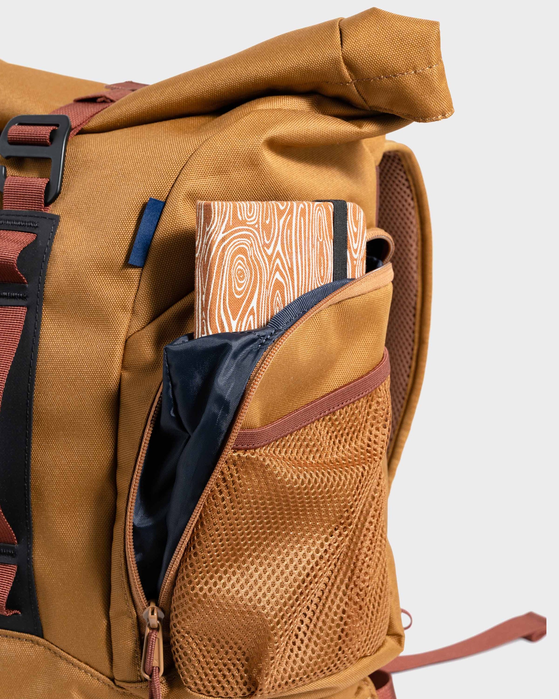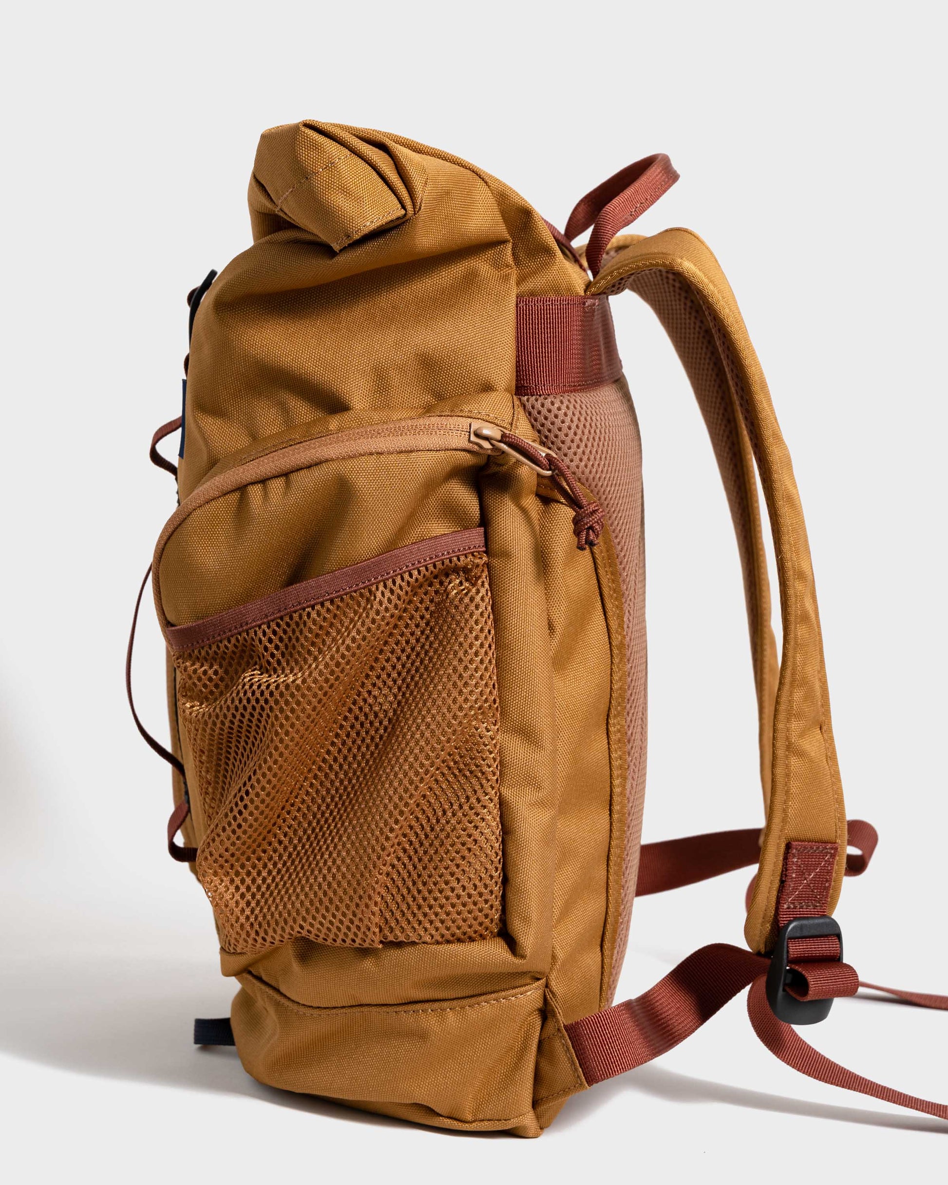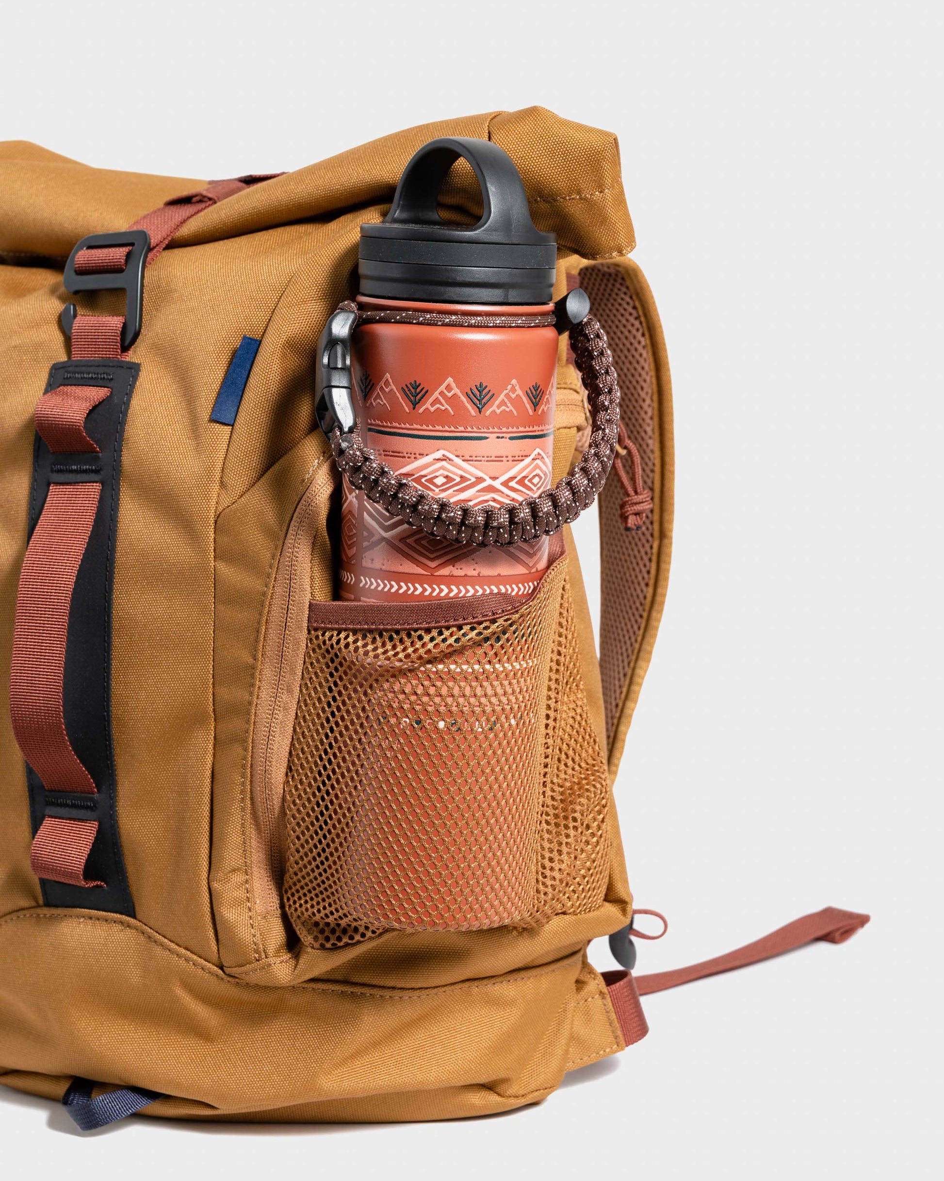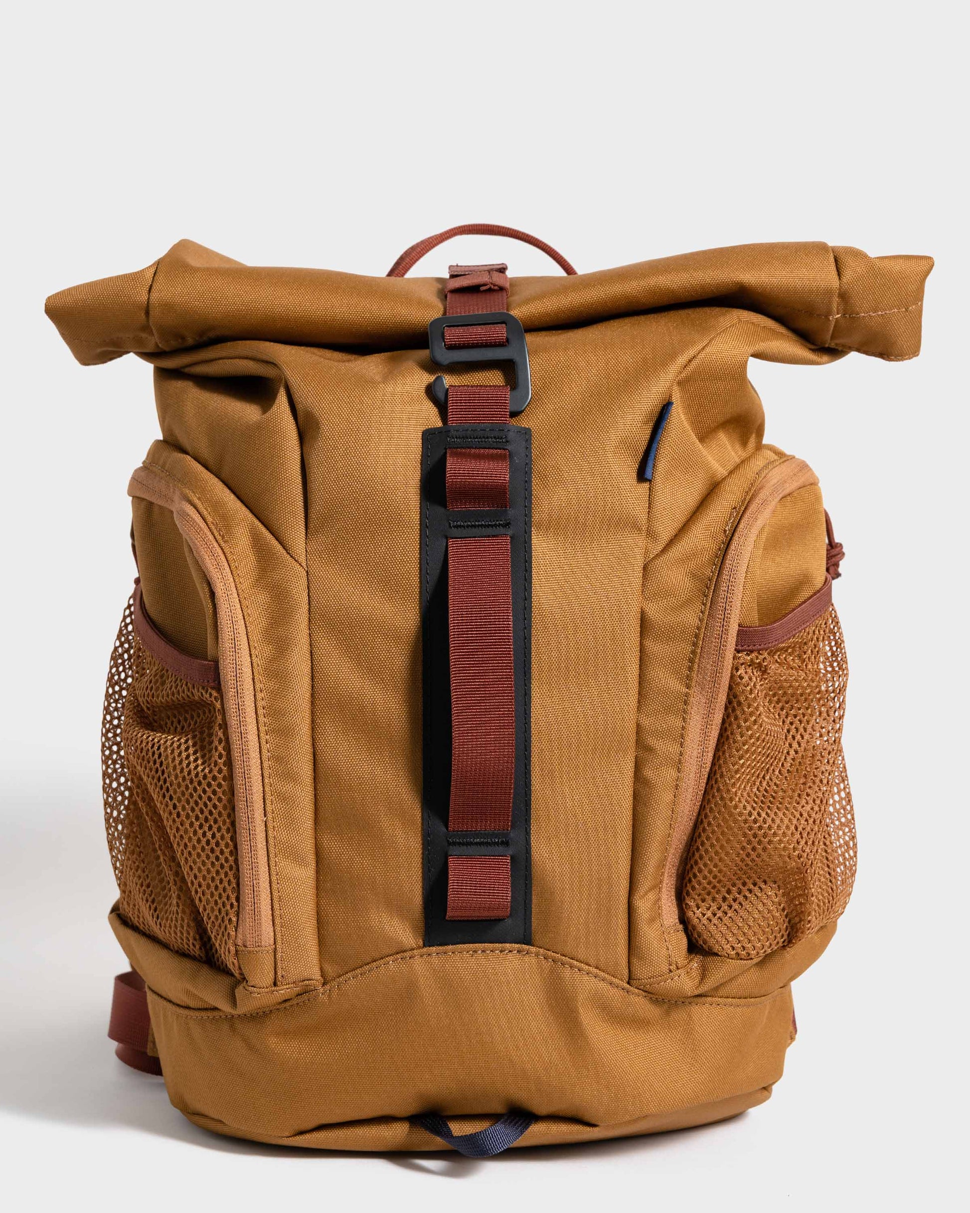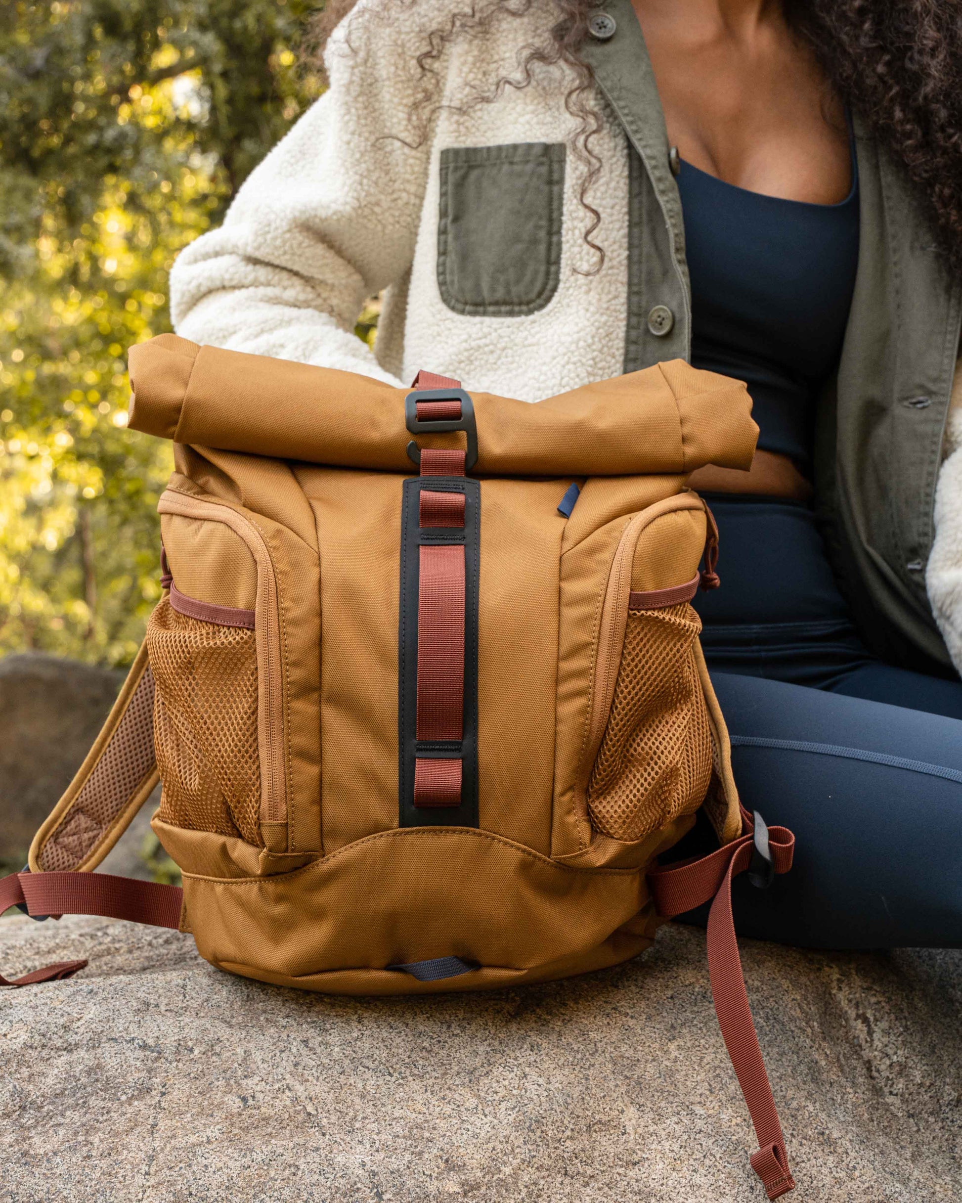 The (R)evolution™ 16L Rolltop Backpack got some modern upgrades. It's still the compact, versatile backpack you know and love, now with expandable water bottle pockets, improved exterior storage and organization, and aluminum hardware. Made from recycled plastic bottles, 100% vegan, water-resistant, and stain resistant.