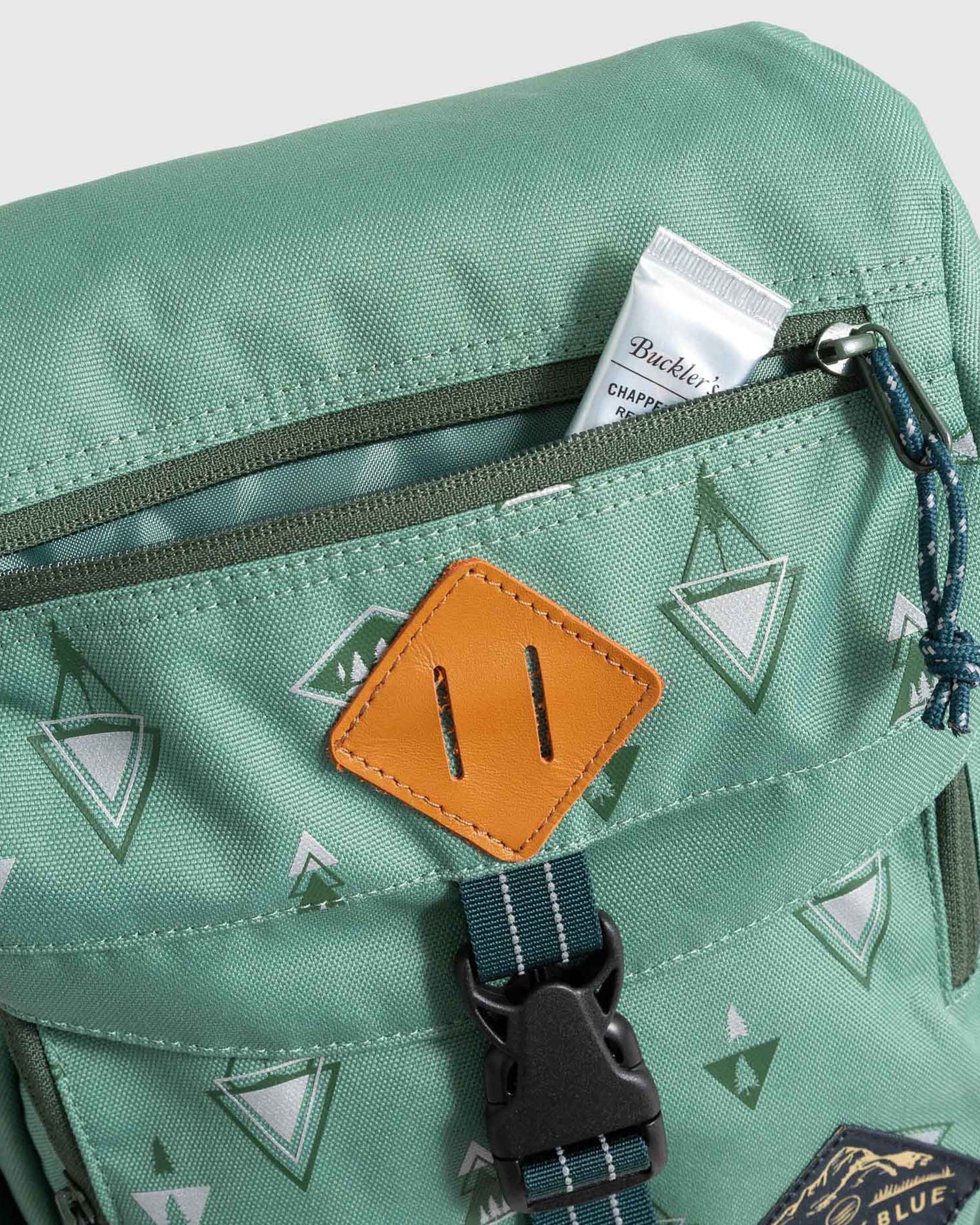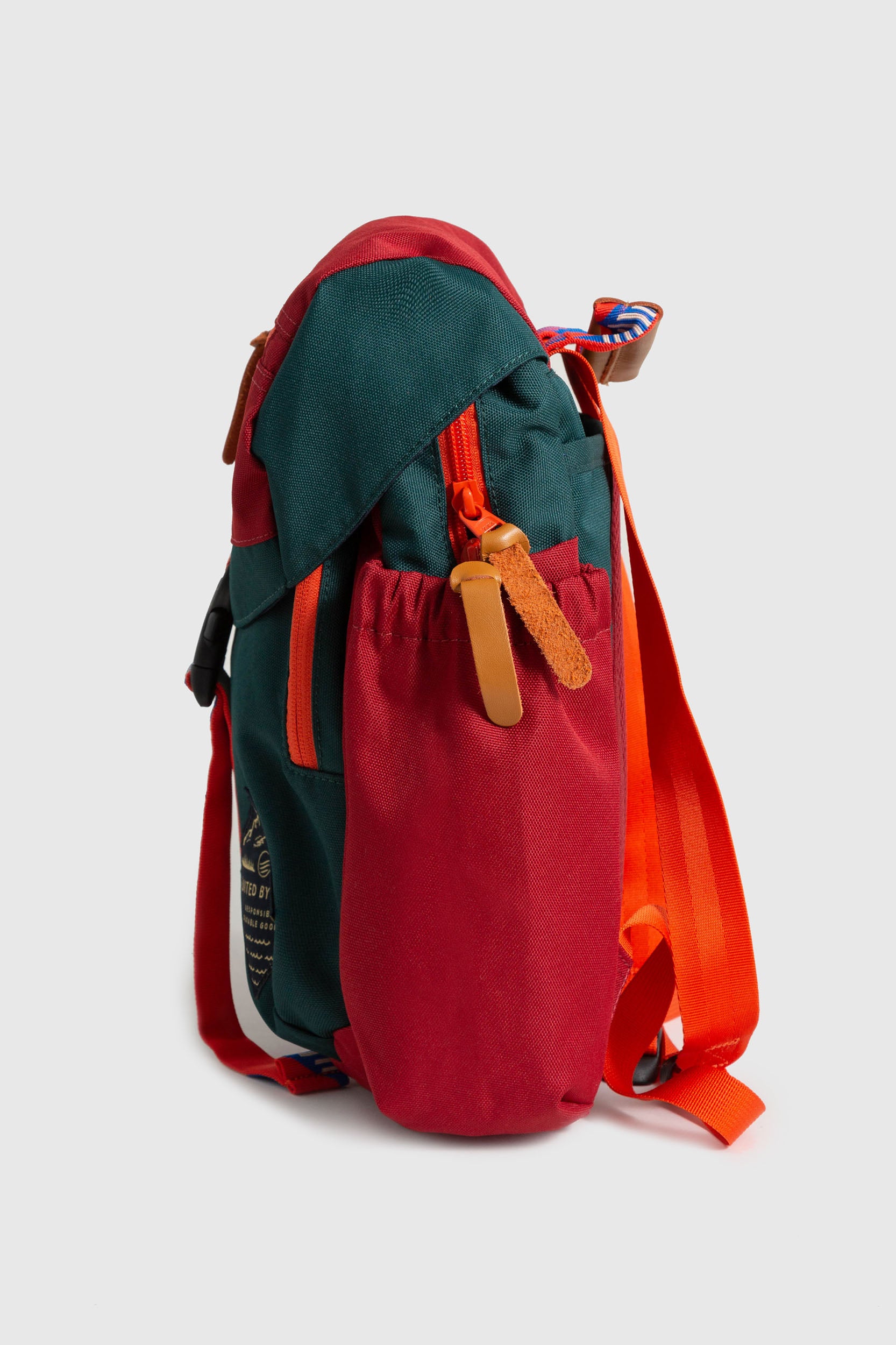 • 100% recycled polyester with water repellent finish, genuine vegetable tanned leather details