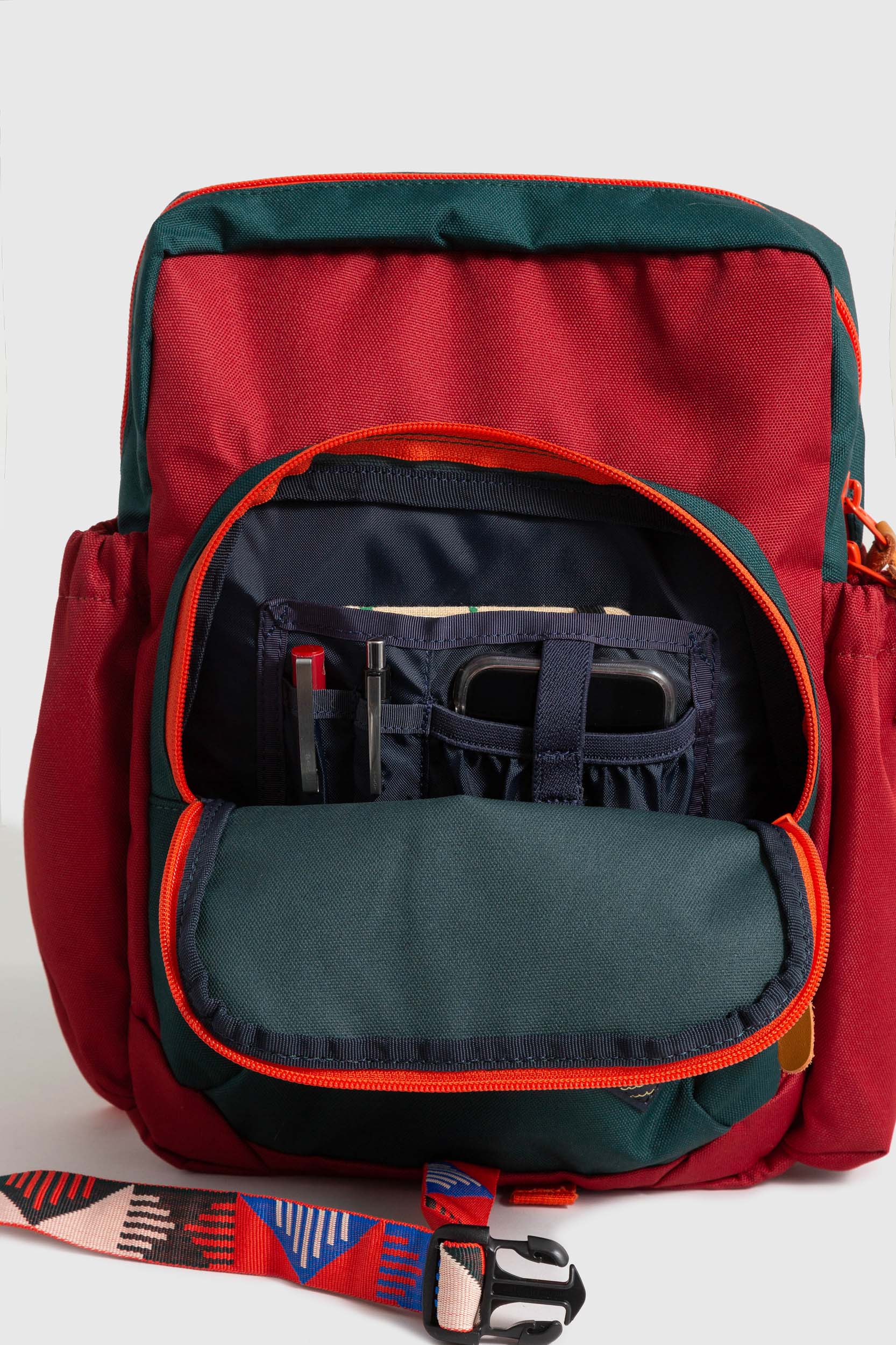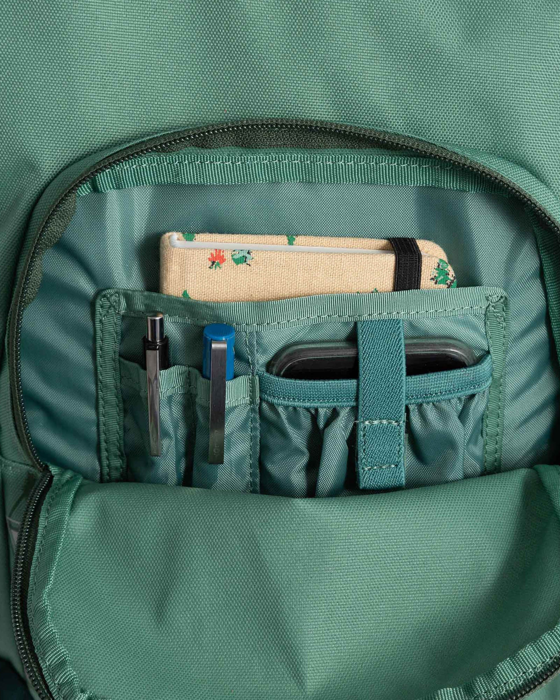 • Exterior zipper pocket and open pocket
