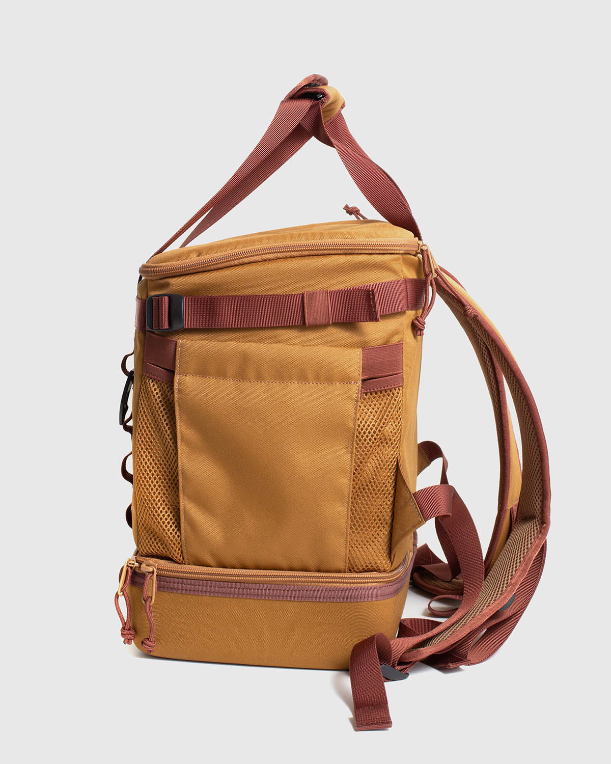 Just when you thought your bag couldn’t get any cooler. Keep your food and drinks cold and your hands free with this practical pack. It’s made of plastic water bottles, but we prefer to fill ours with reusables.