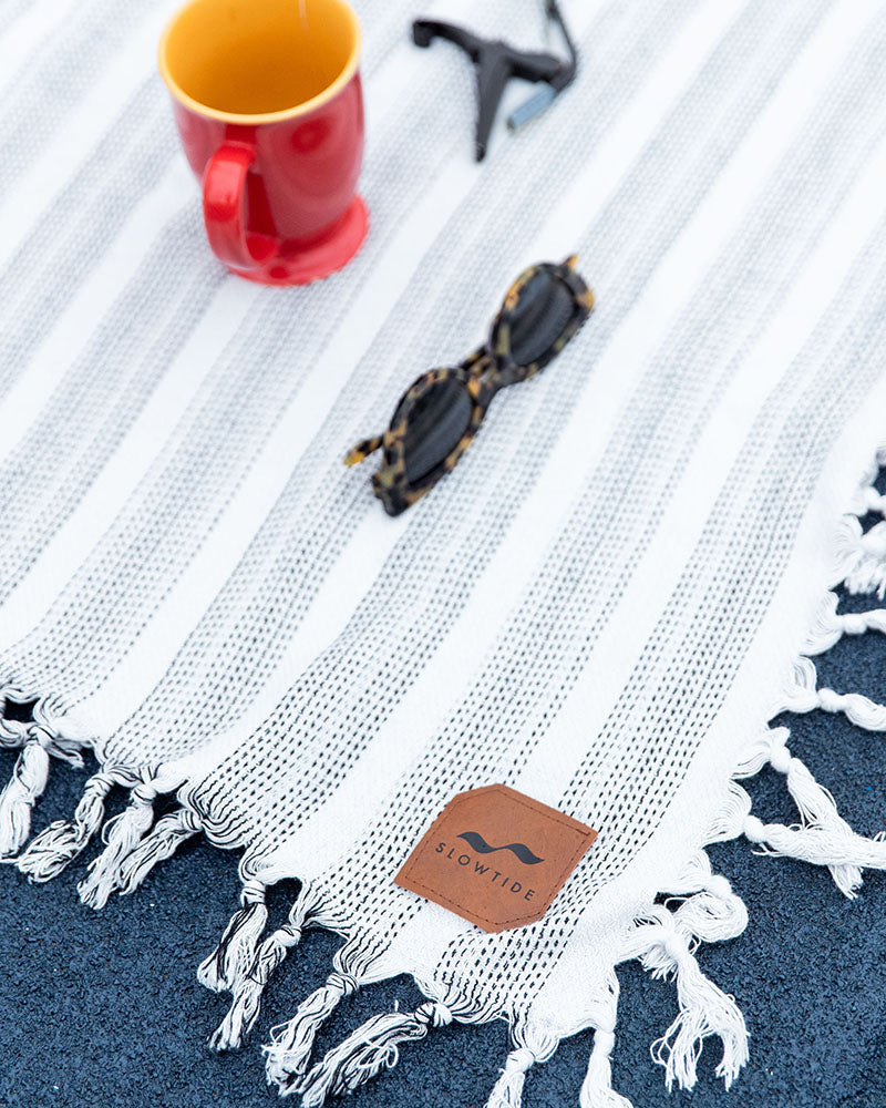 Slowtide has mastered the art of drying off. Through partnerships with artists, photographers, designers, and more, Slowtide creates unique towels with premium quality. Crafted in an ultra-lightweight turkish style chambray fabric, this comfy blanket gets softer with every wash. It fits over a queen sized bed, works as a wall tapestry, and is large enough for a few friends to picnic on.
