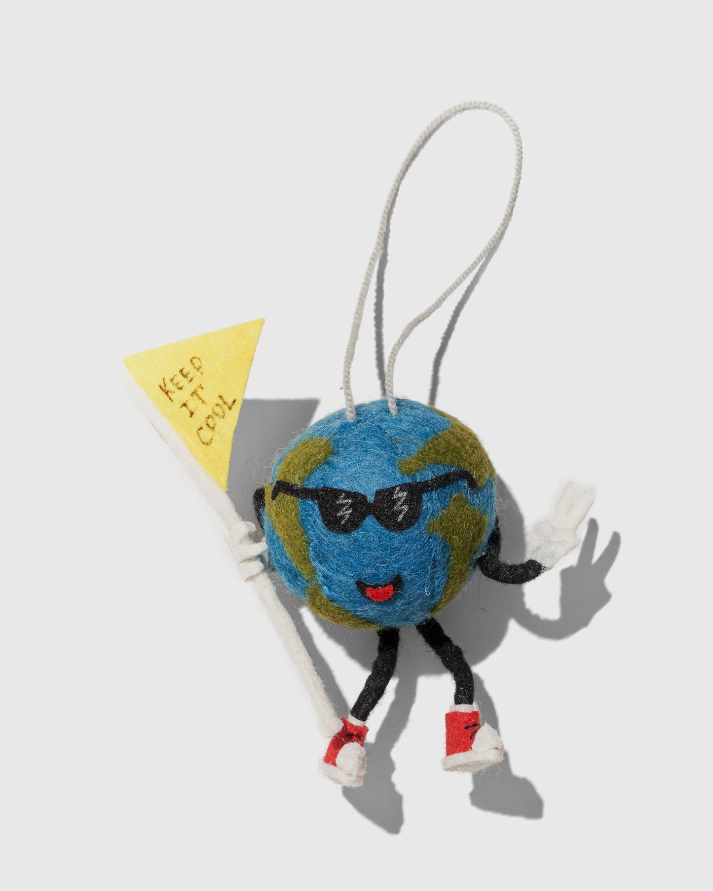 Eddy Earth reporting for tree-trimming duty. Meet Eddy: UBB mascot, earth lover, and big advocate for keeping it cool. This exclusive ornament was created in collaboration with Silk Road Bazaar, and each one is made by a women-led, women-run cooperative called Kork, based in mountainous villages across Kyrgyzstan. Kork is Fair Trade Certified, which means every purchase supports the artists fairly while empowering them economically and socially.