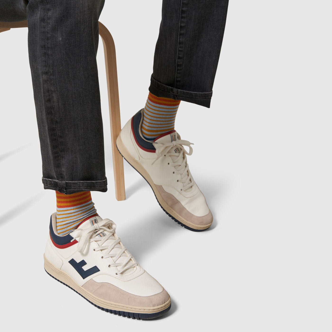 • Crew socks that sit at the lower calf