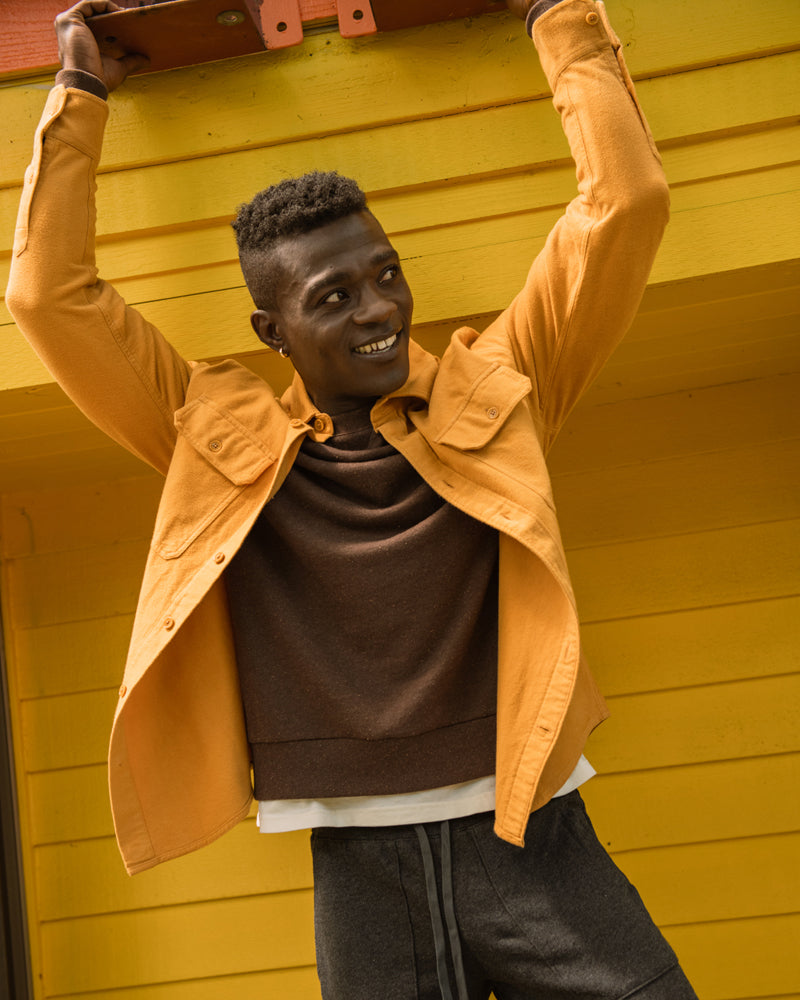 An easygoing pullover with a soft terry knit material. Comfy enough to pair with sweats, structured enough to wear with jeans.