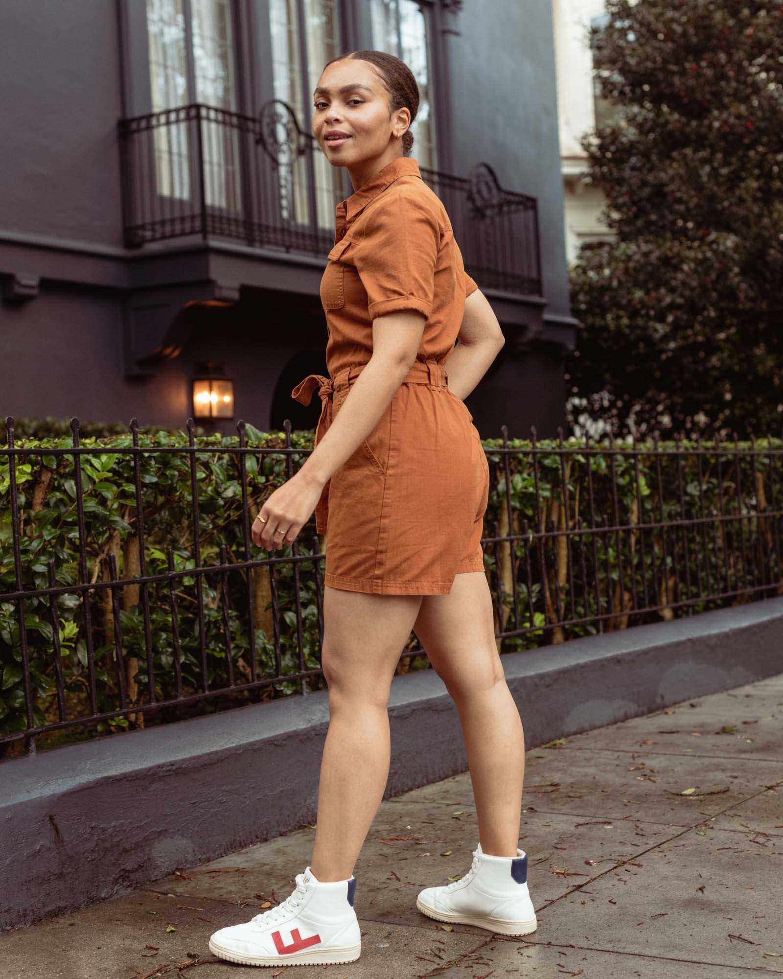 Playful yet sophisticated, the Organic Ripstop Romper is the ultra-flattering one-piece that’s made to romp around in. Made of 100% organic cotton and just waiting for a spot in your closet.