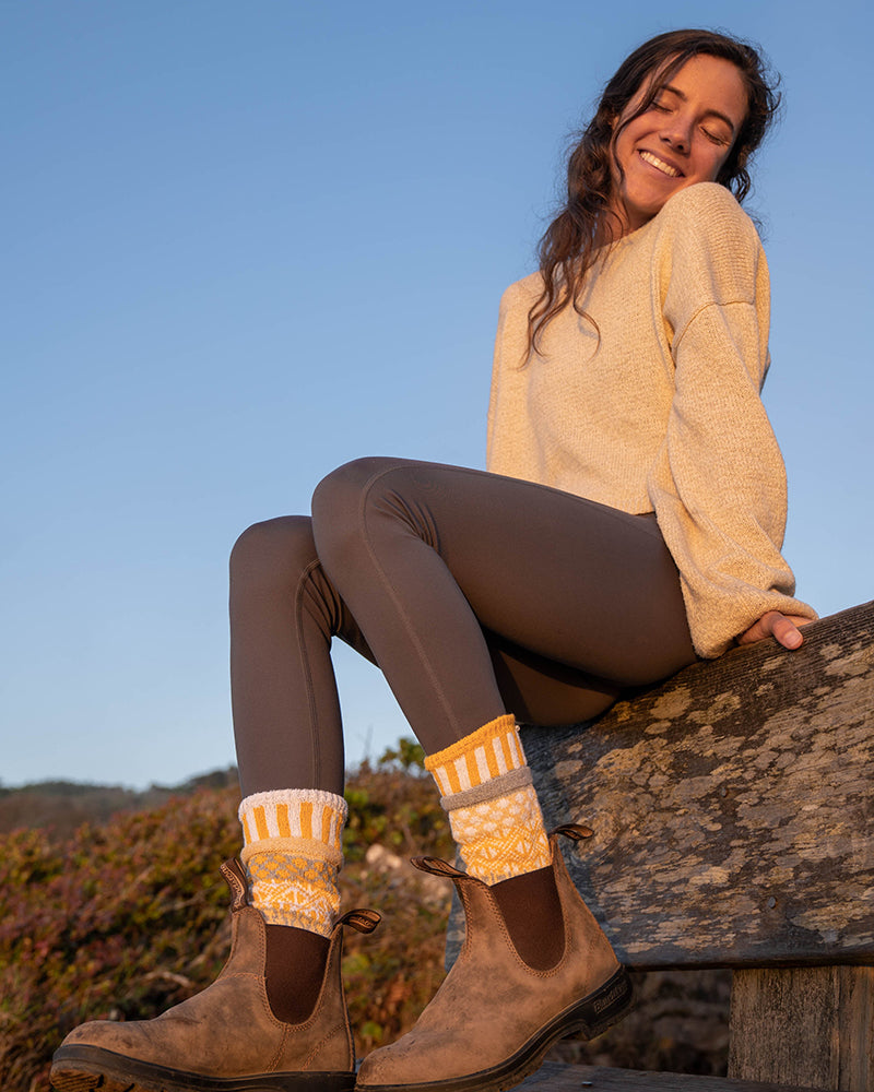 Solmate Socks is a certified B-Corp known for creating fun, whimsically mismatched socks designed to accentuate style and individuality. Using sustainably-sourced, eco-friendly fibers like recycled yarn from production scraps and used clothing, all of Solmate’s products are ethically made at their own mill in Hickory, North Carolina. These colorful crew socks are a member of Solmate’s Pacific Collection, inspired by the simple beauty of the Pacific Northwest.