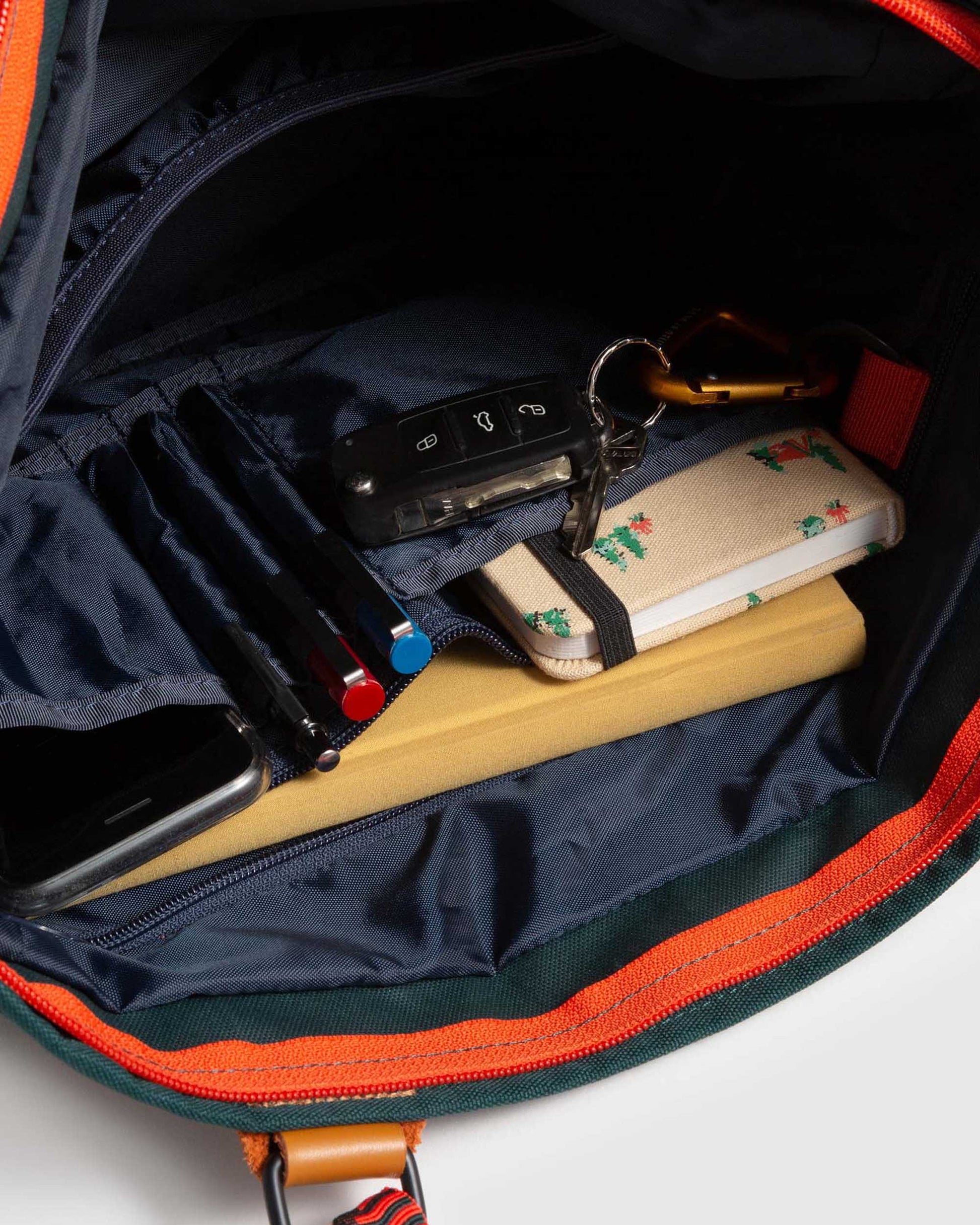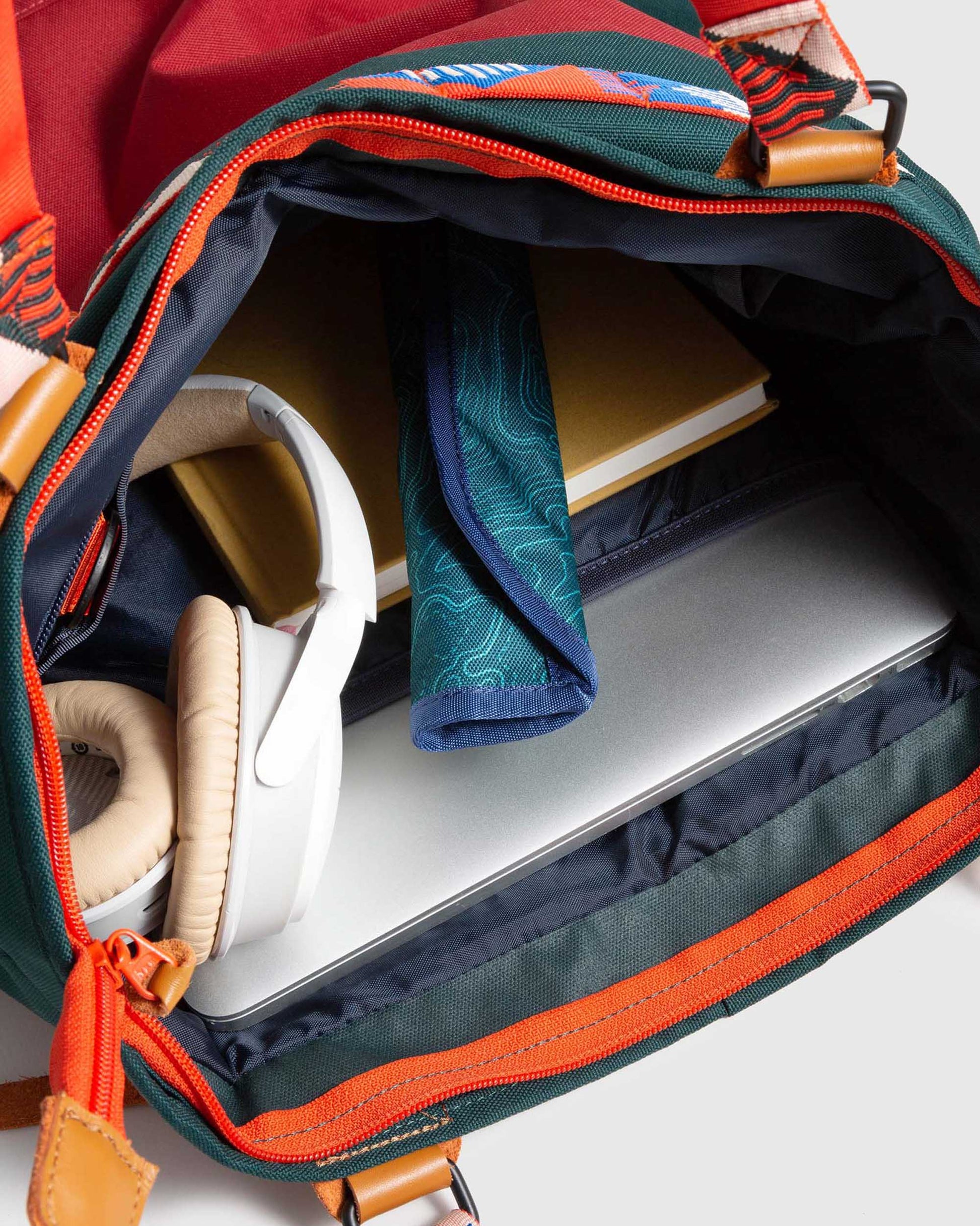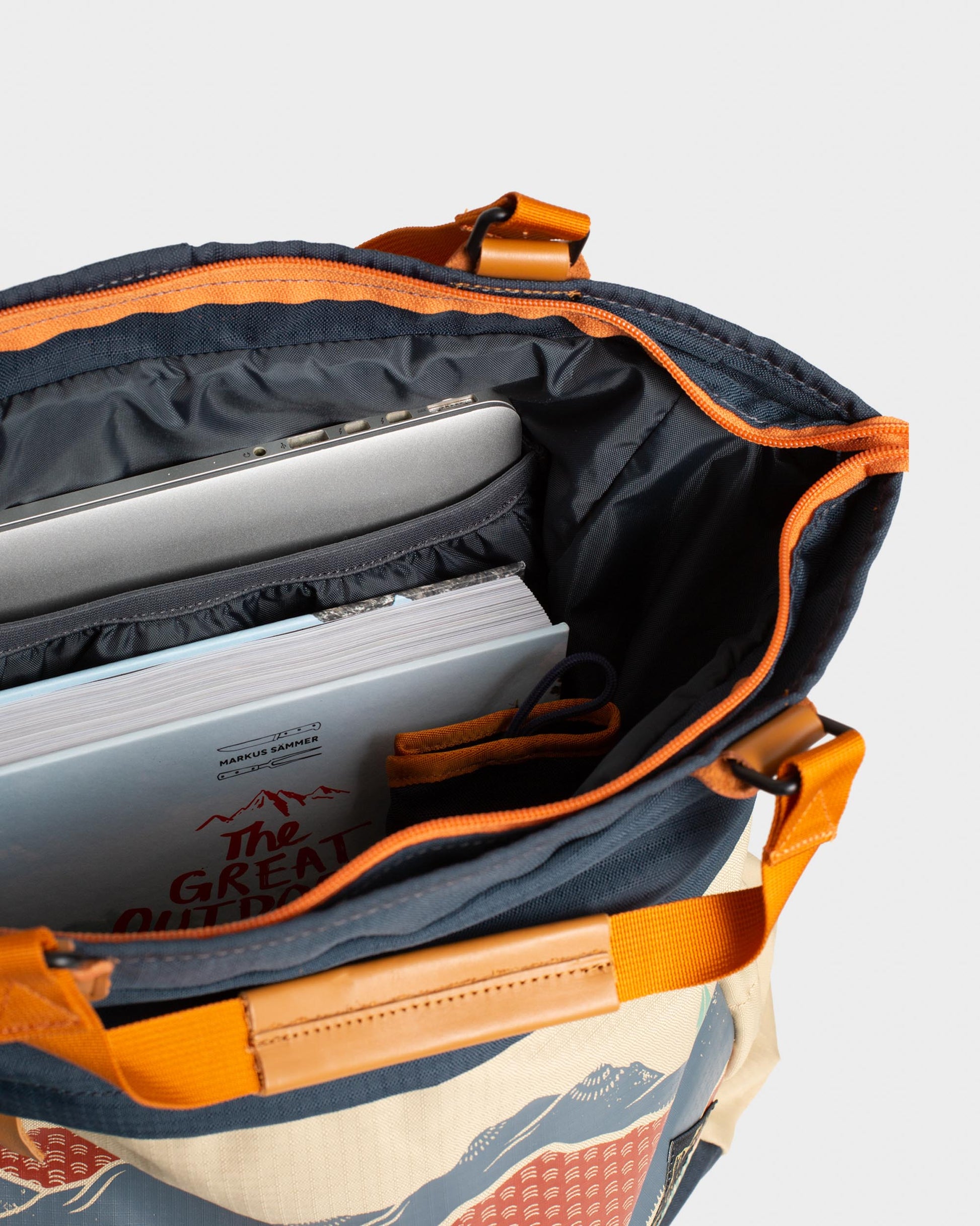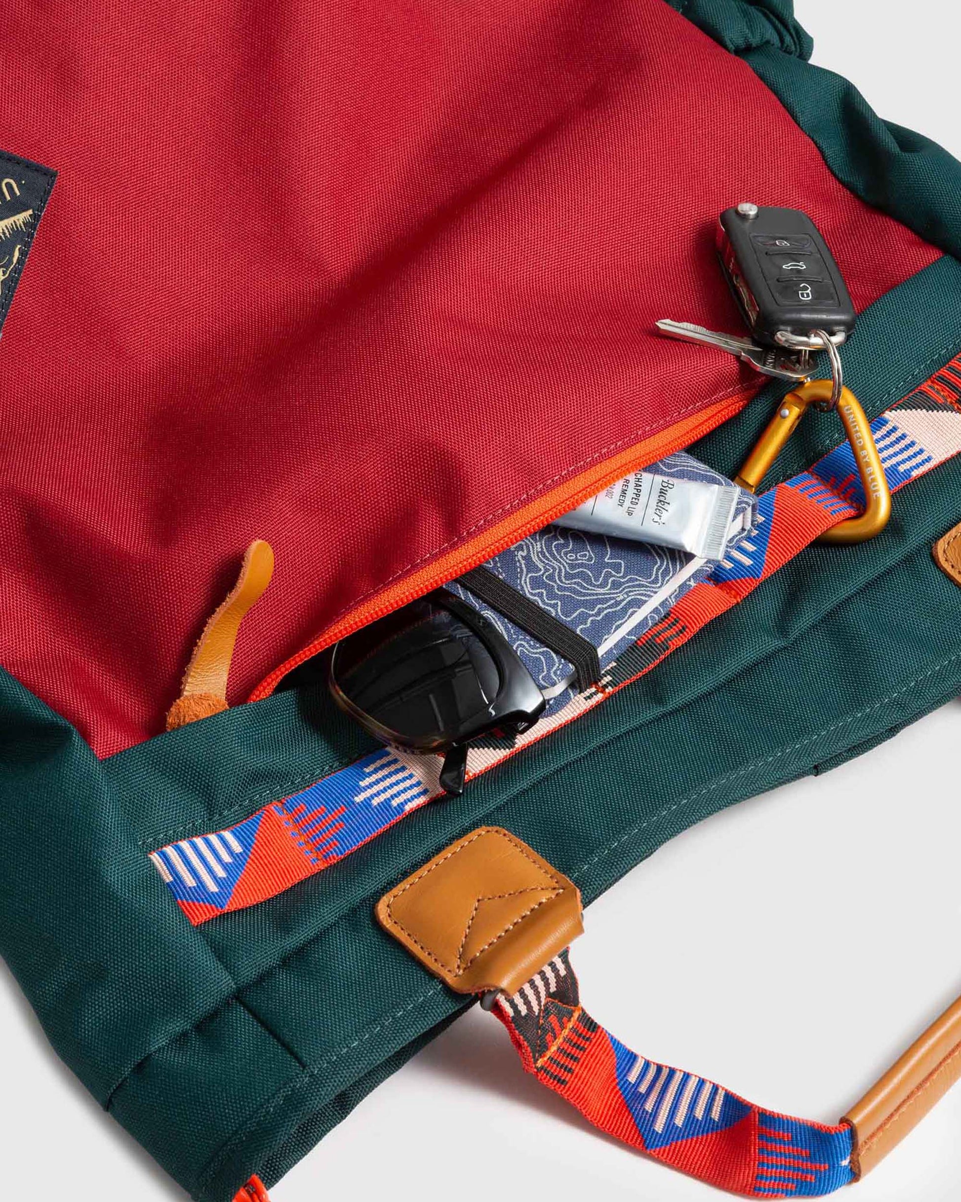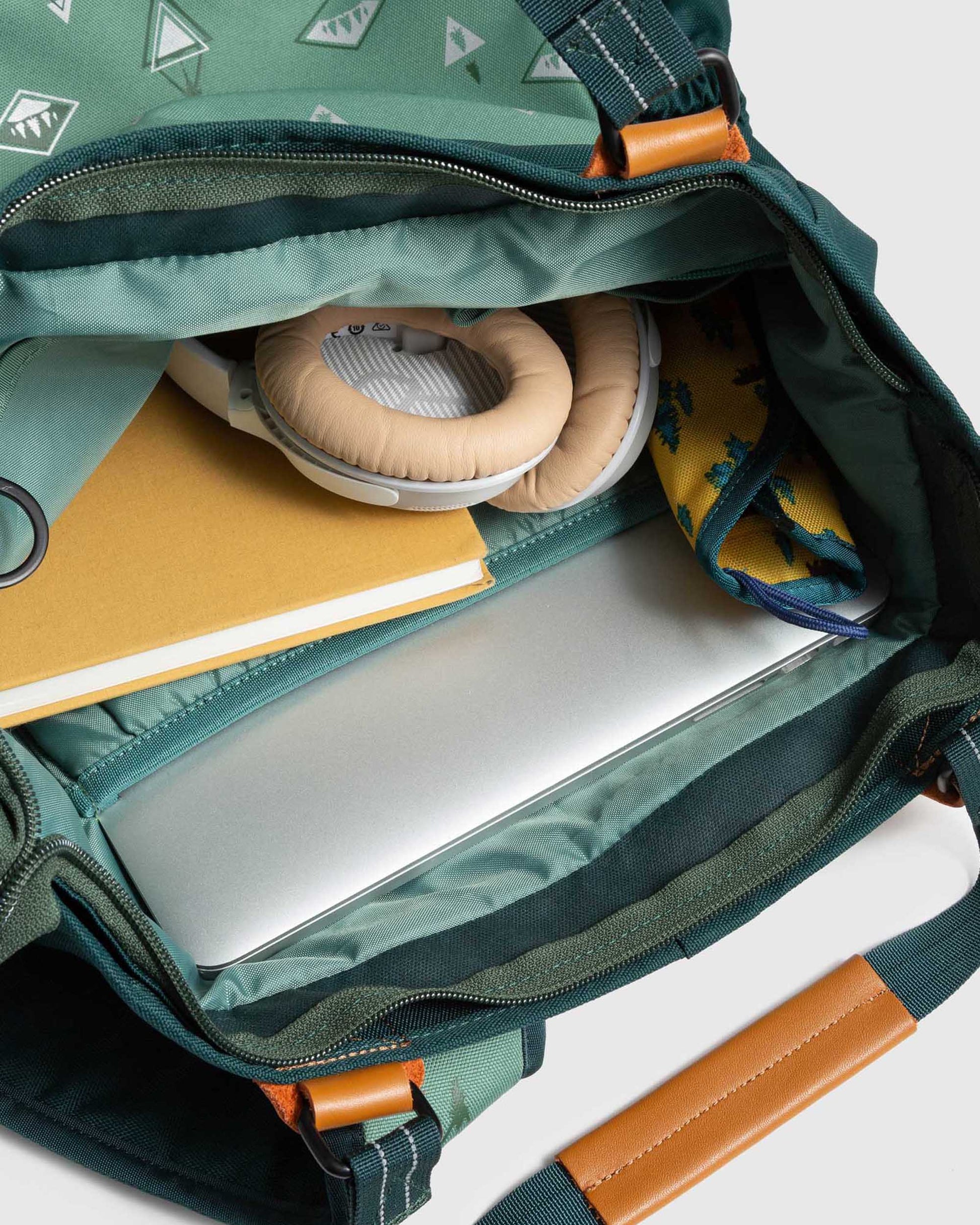 • Recycled polyester with water repellent finish, genuine vegetable tanned leather details