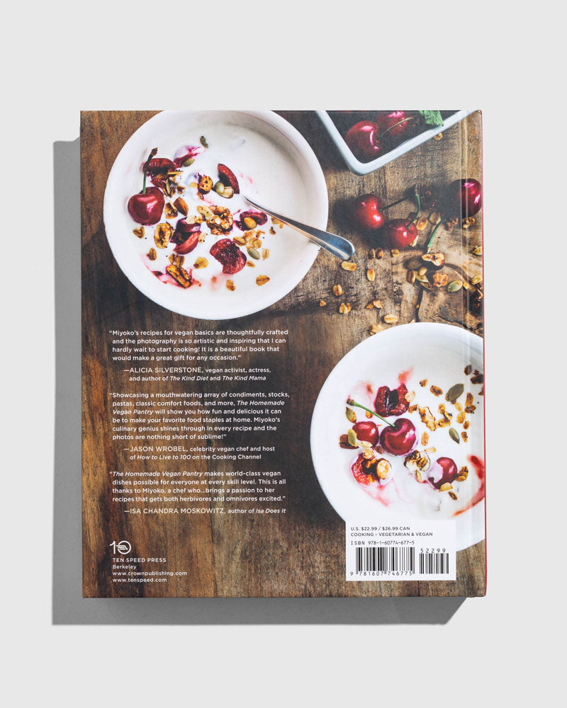 Studded with full-color photos, The Homemade Vegan Pantry celebrates beautiful, handcrafted foods that don’t take a ton of time, from ice cream and pizza dough, to granola and breakfast sausage. Author Miyoko Schinner guides readers through the techniques for making French-style buttercreams, roasted tomatoes, and pasta without special equipment. Her easy methods make “slow food” fast and full of flavor.