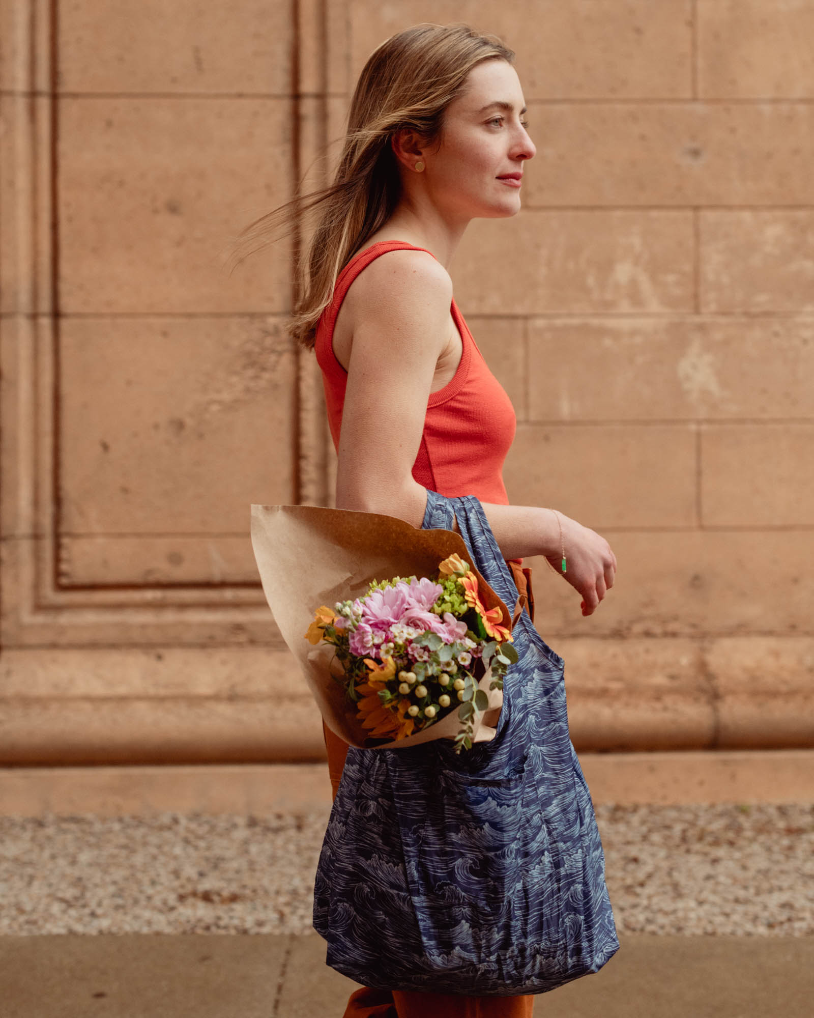 The easiest way to kick the single-use plastic bag habit: a packable tote you can have on you all the time. This collapsible tote is water-resistant, stain-resistant, and made from recycled plastic bottles. Includes a handy carabiner loop so you can clip it to your bag or stash it away.