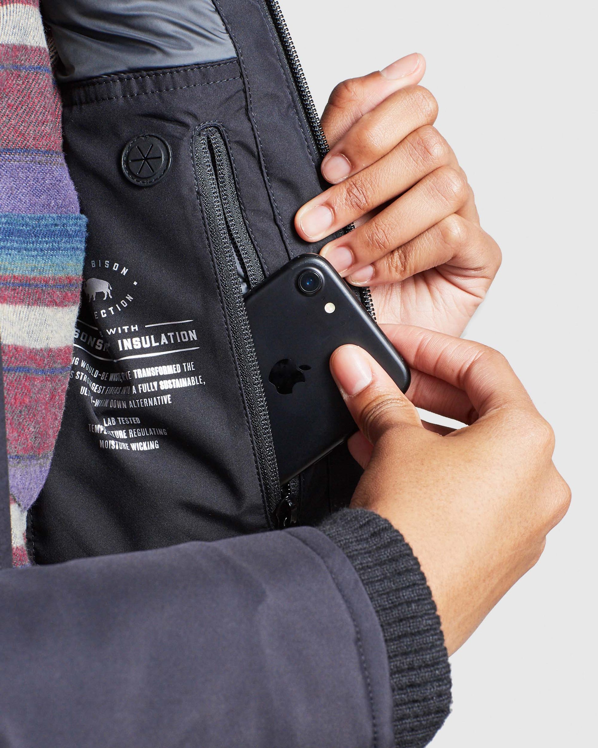 • Insulated with 190 gsm BisonShield™ Fill insulation, a blend of bison fiber and recycled polyester that's moisture-wicking, temperature-regulating, and antimicrobial