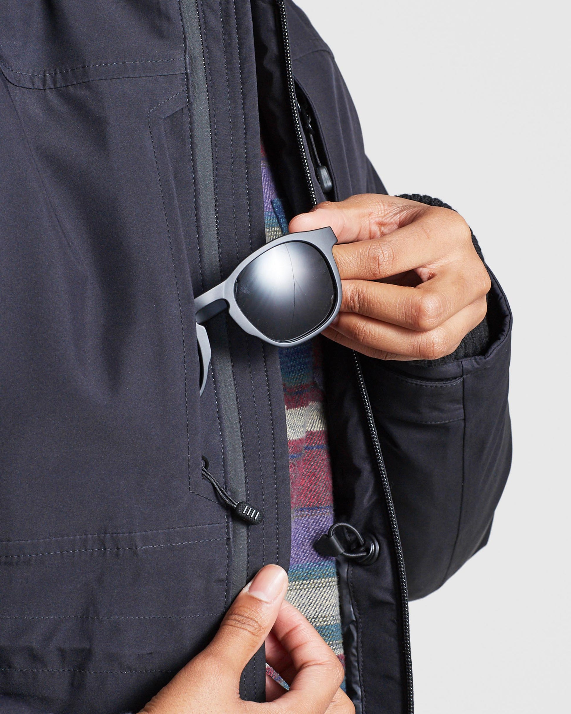 • Two chest pockets, two side pockets, two interior pockets, stash pocket on sleeve for lift tickets or subway passes