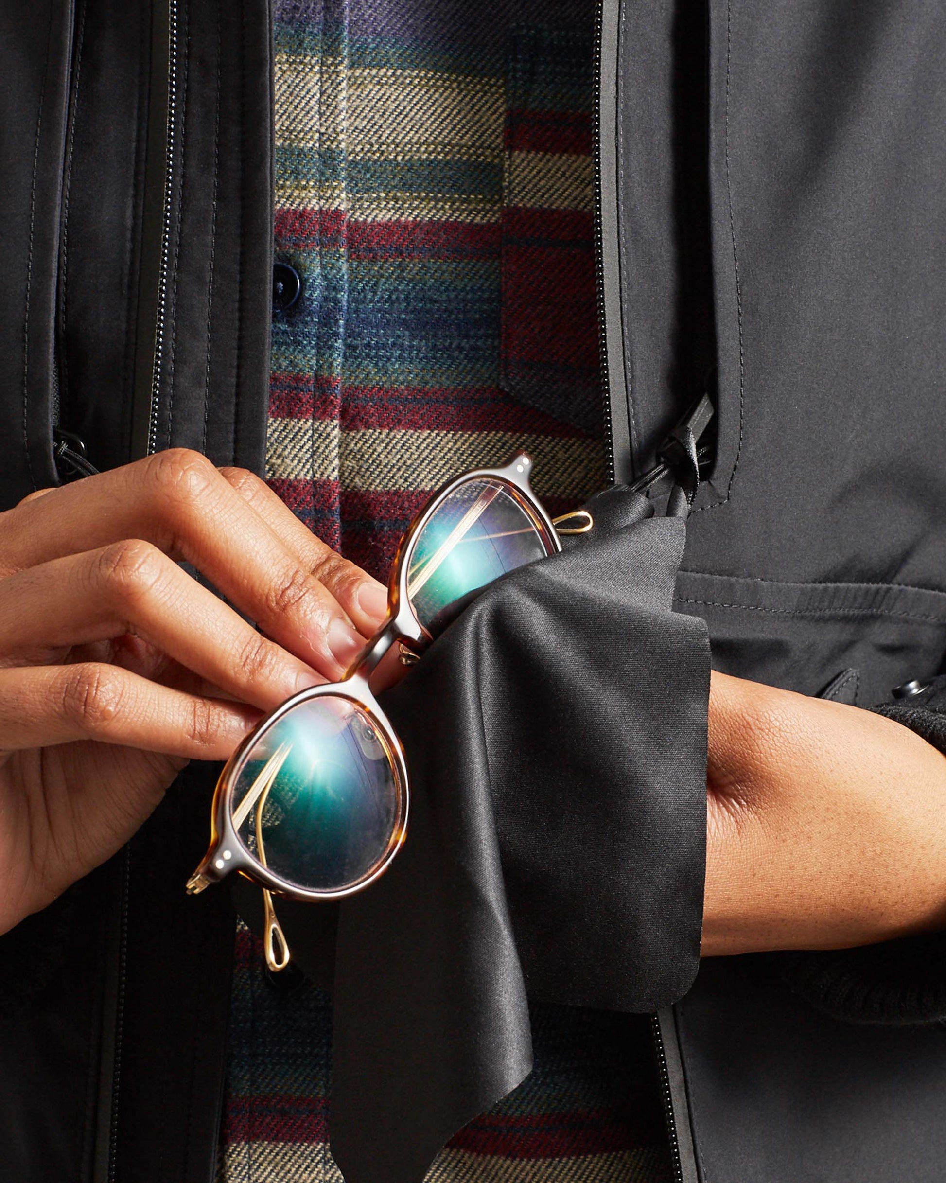 • Anchored drawcord at hem to adjust fit, with a no-moving-part cord lock to withstand wear and tear and articulated, adjustable sleeves with anchored drawcords.