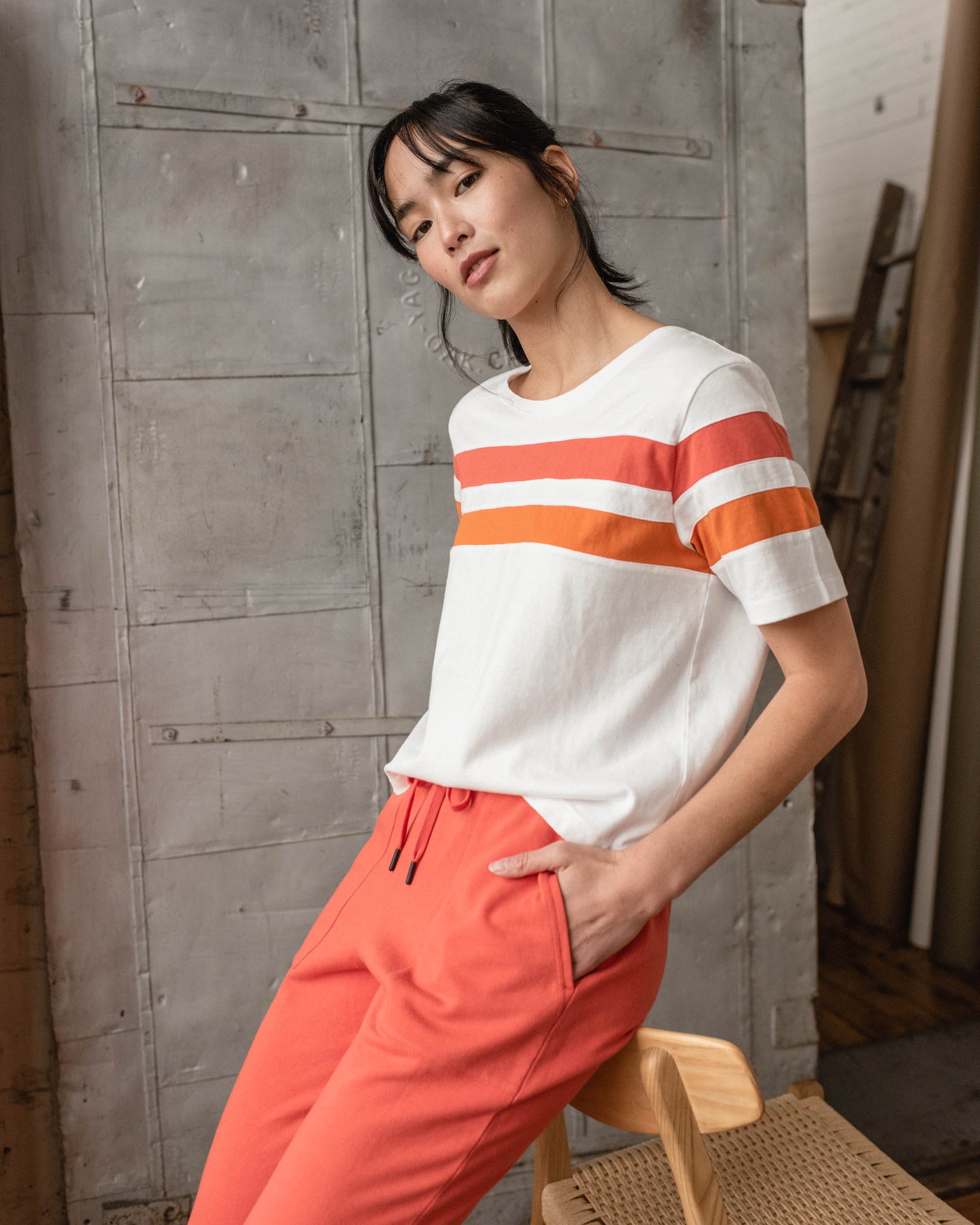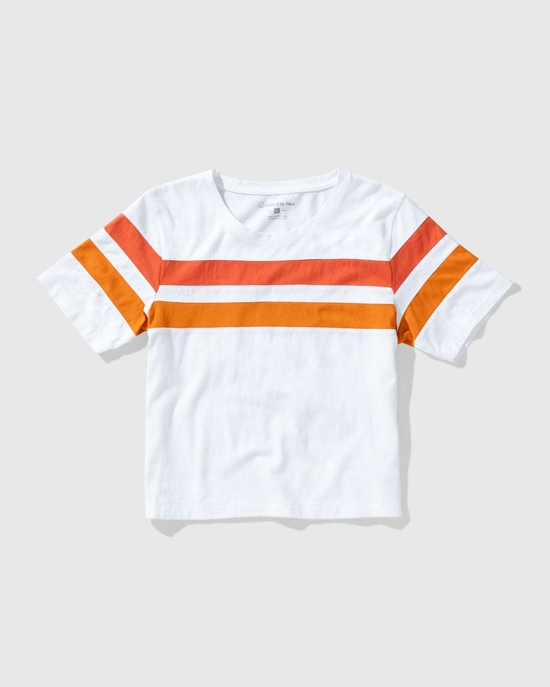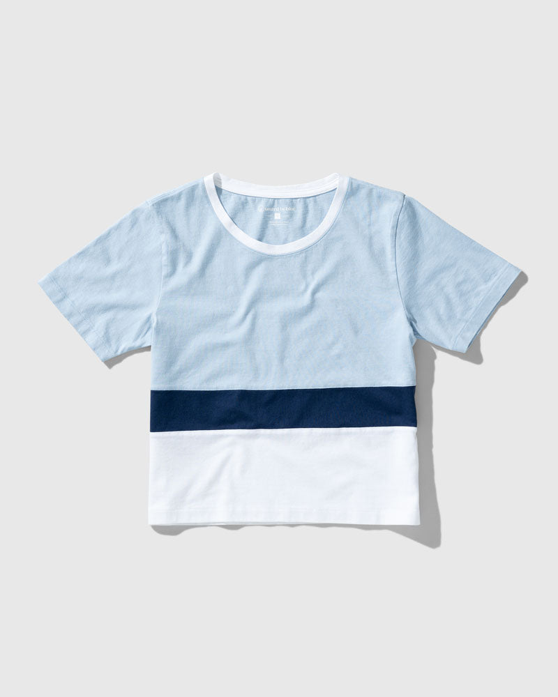 Color-blocked and slightly cropped with a boxy fit. It’s the pair-with-any-bottom top that’s just as easy as your other basics but with a little extra cool-factor.