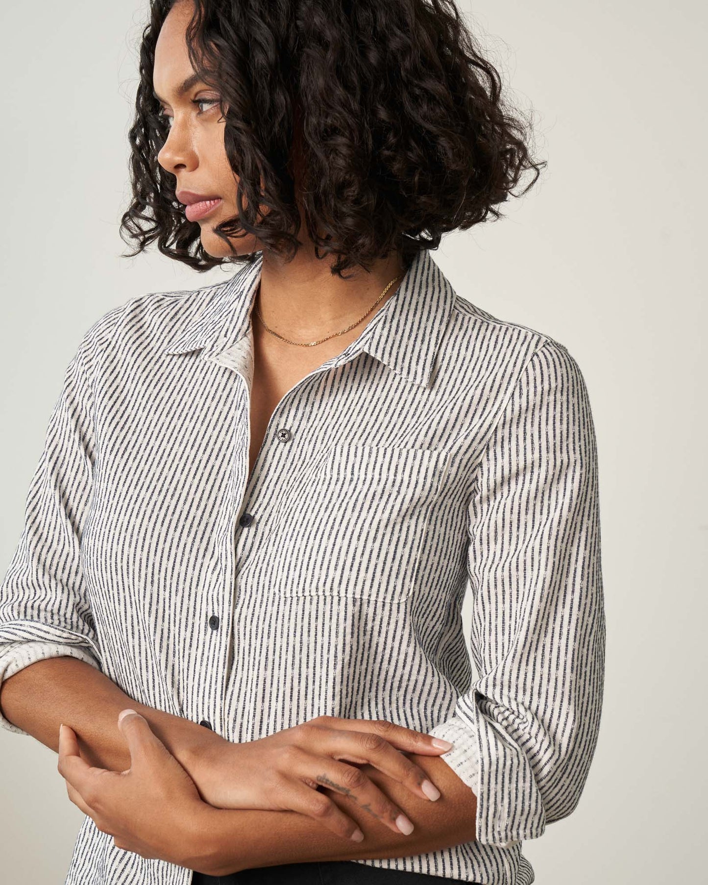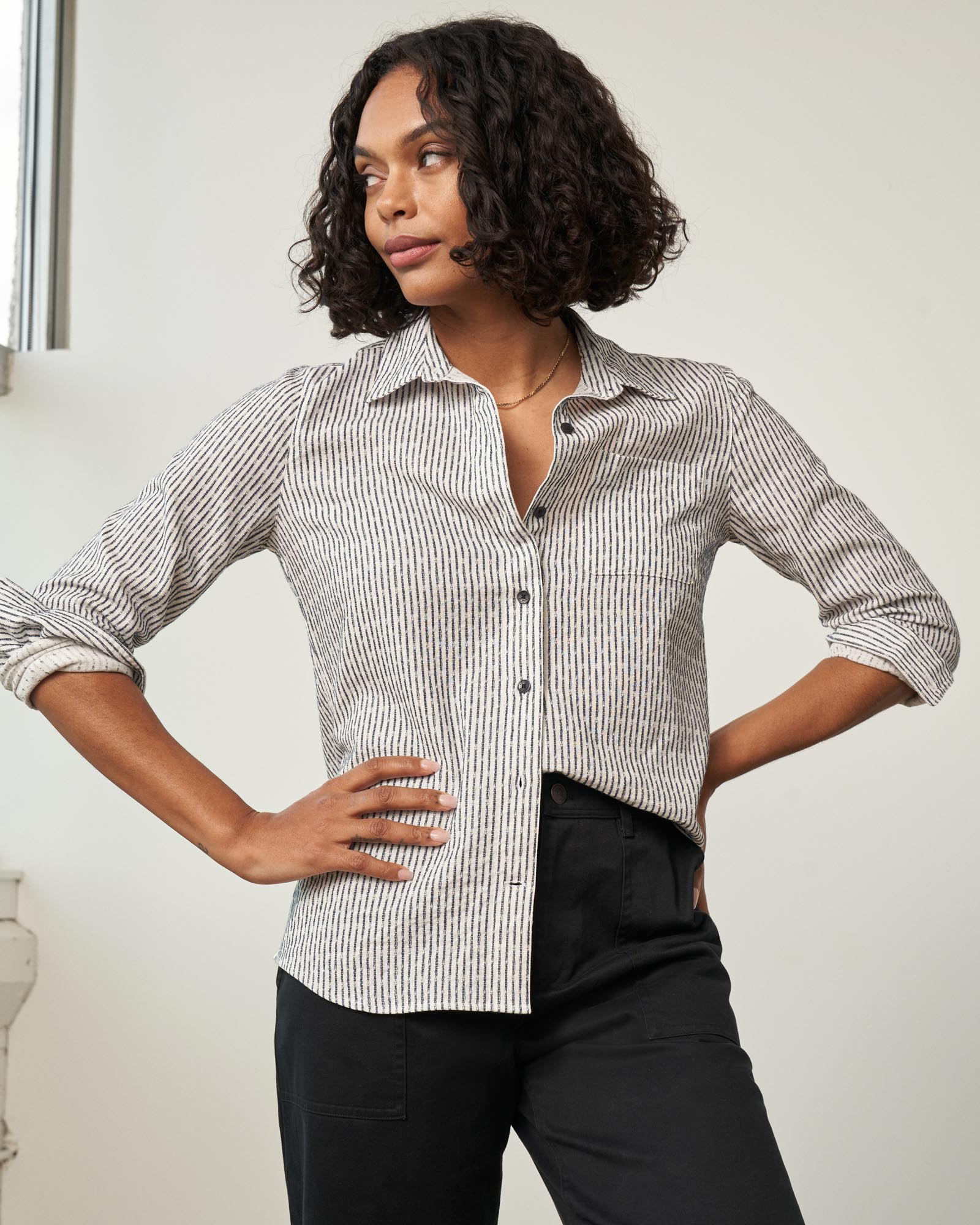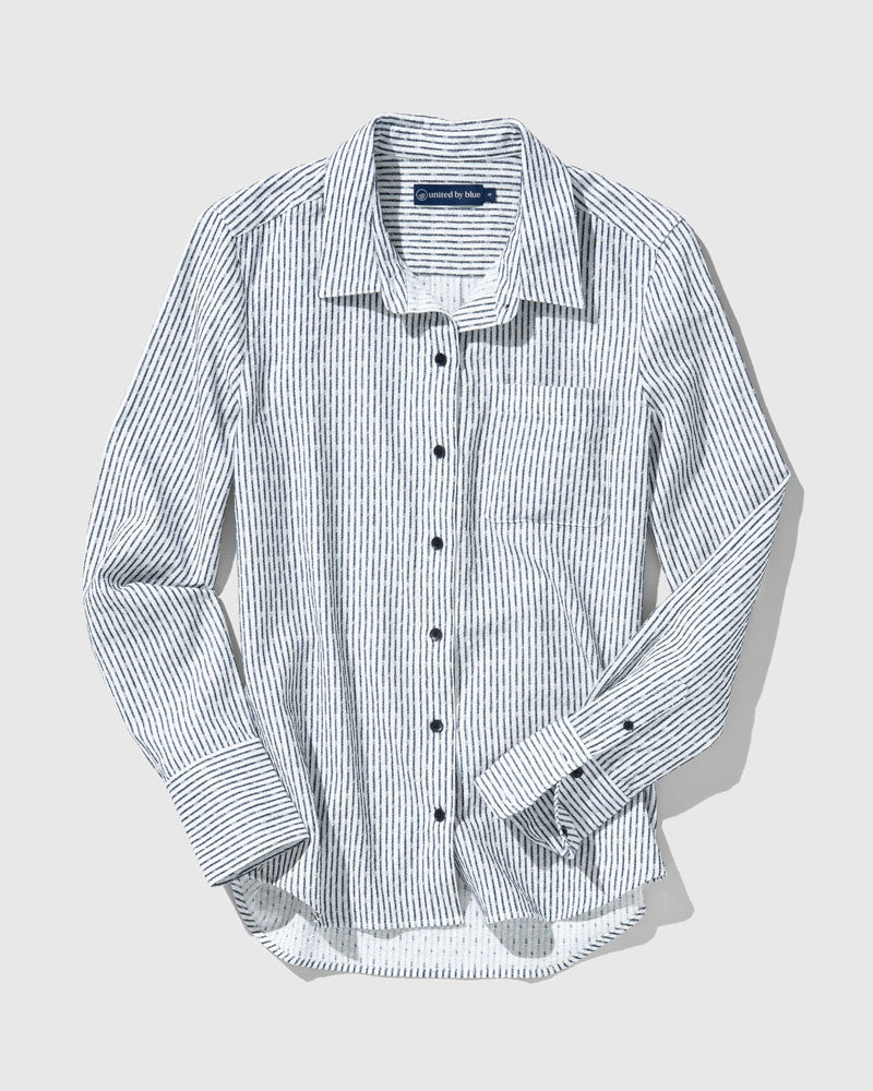 Show your stripes. Designed in our classic shirt silhouette, this breezy button down is made from light and comfy organic cotton with nautical-inspired stripes to add some freshness to your wardrobe.