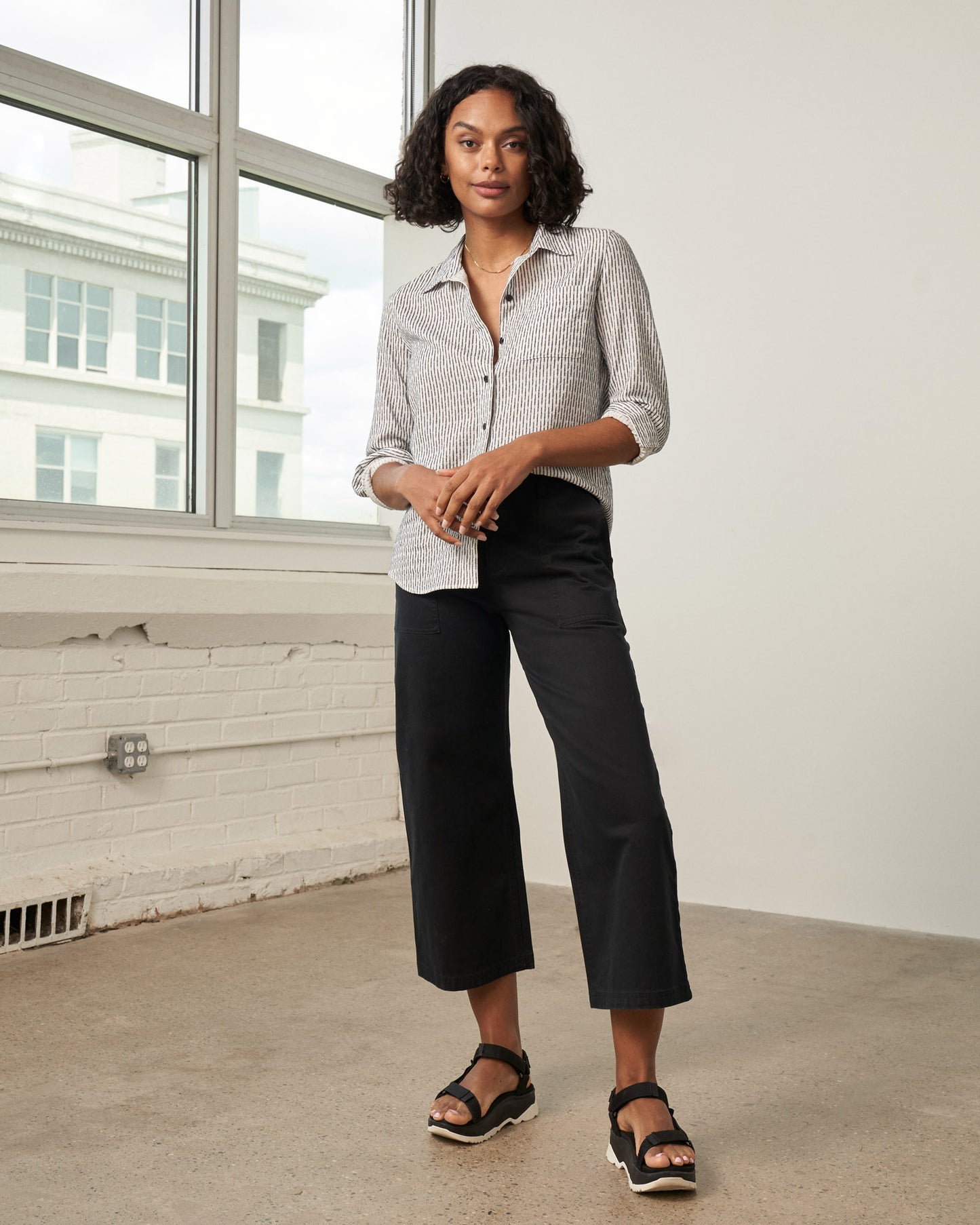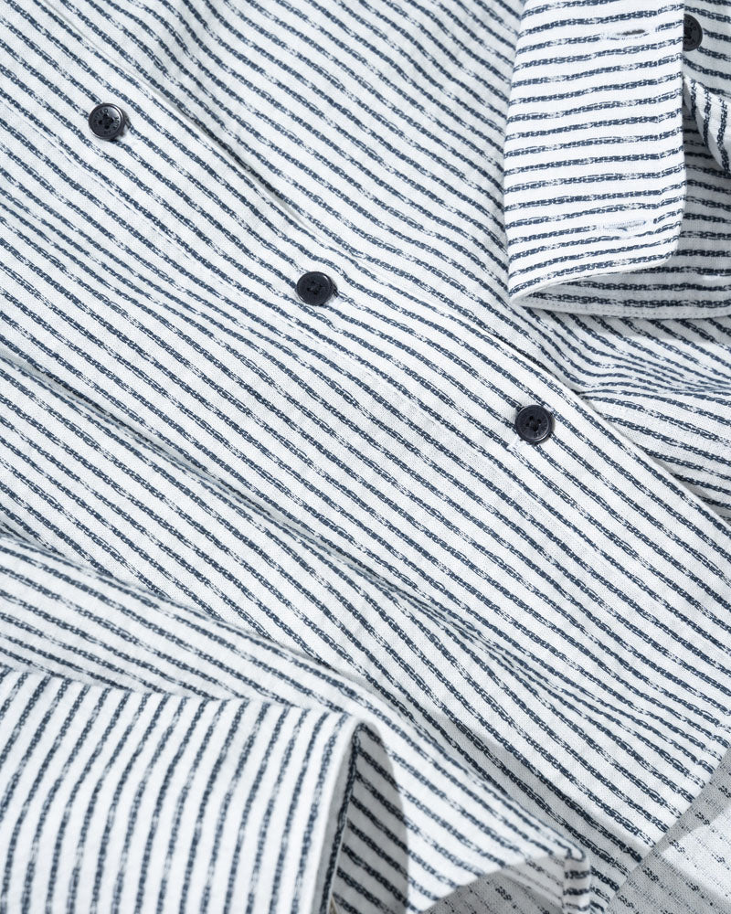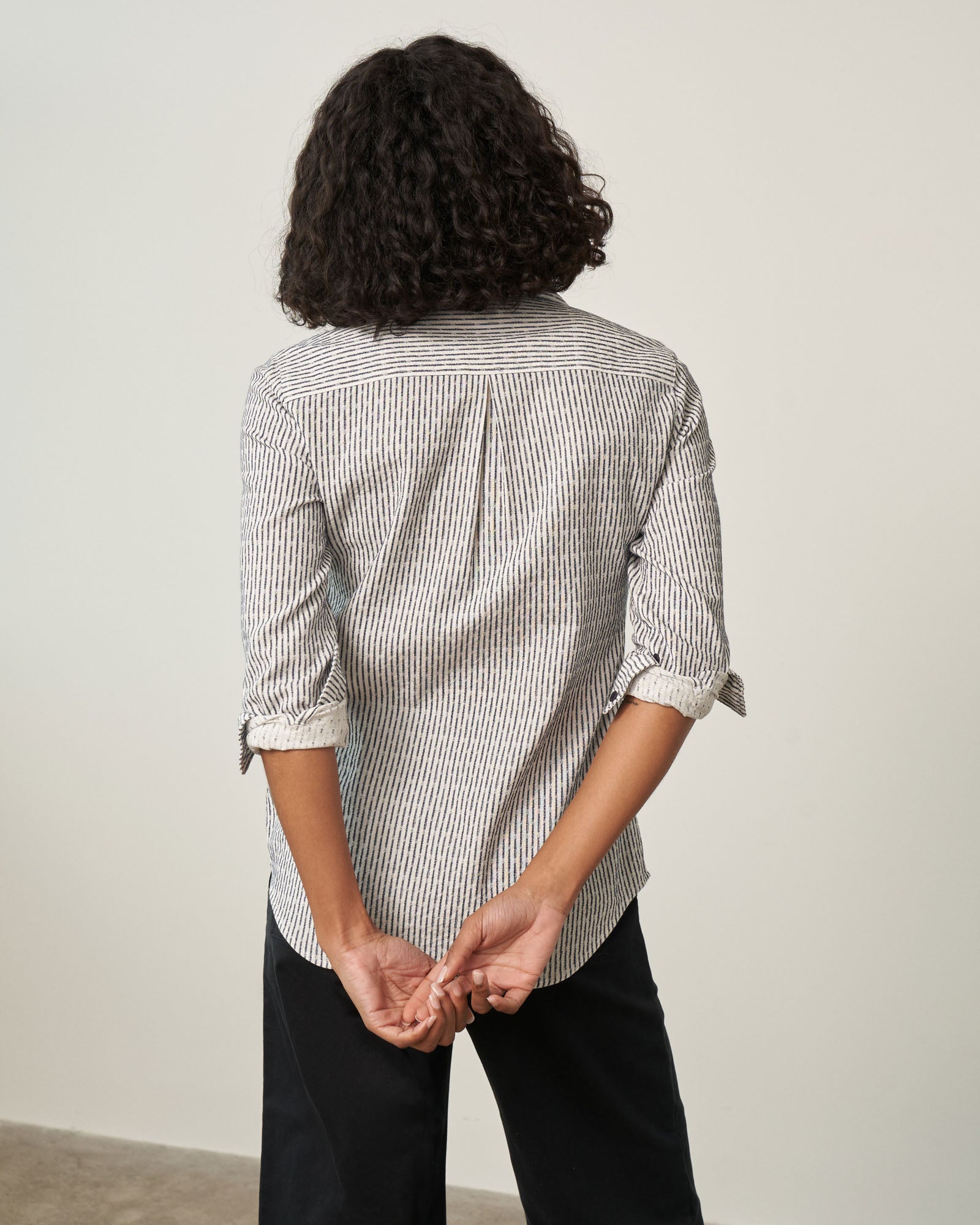 Show your stripes. Designed in our classic shirt silhouette, this breezy button down is made from light and comfy organic cotton with nautical-inspired stripes to add some freshness to your wardrobe.