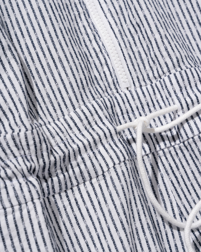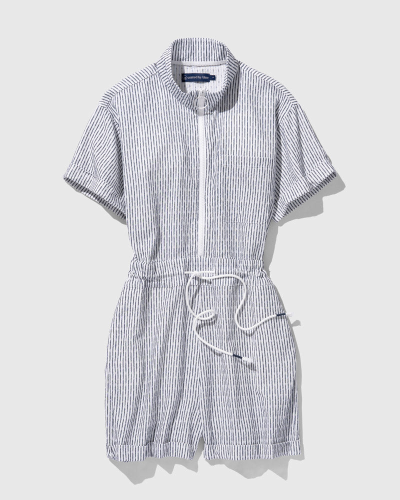 Dobby cloth is a special type of fabric woven on a dobby loom (imagine that) and is known for giving fabric some extra texture. This easygoing romper features soft, worn-looking dobby stripes on even softer GOTS-certified organic cotton fabric. Perfect as a beach coverup or casual summer outfit.