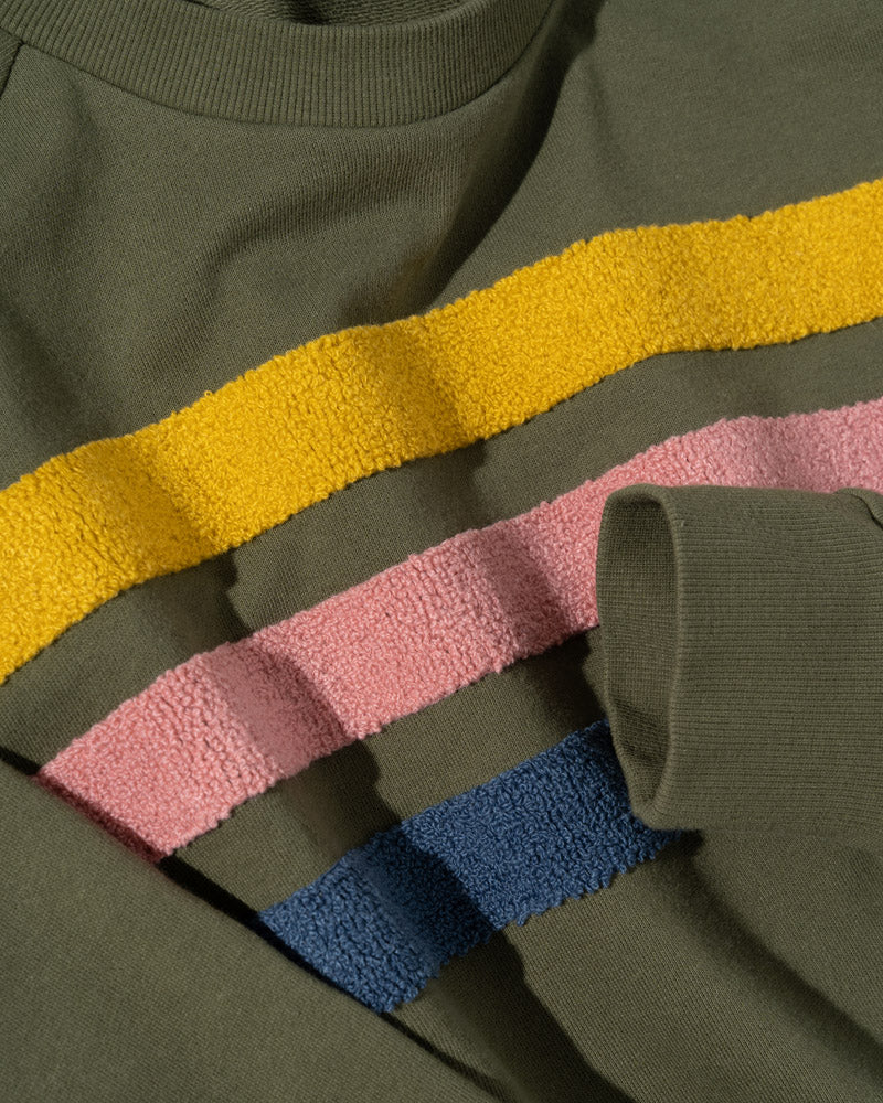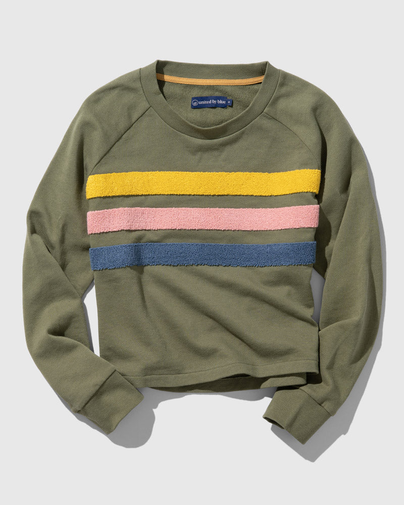 Chenille-embroidered stripes and a slightly cropped fit add a little texture and dimension to this classic crew. Made from 100% organic cotton in a light and comfy terry knit.