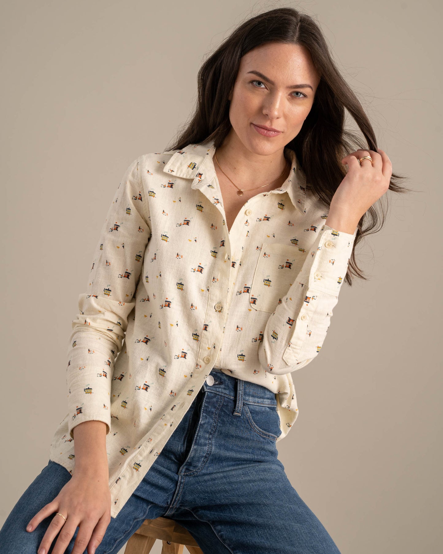 The classic but outgoing one in our button down family. An endlessly tuckable, tie-able, layerable shirt that's perfect for adding a little character to your outfit.