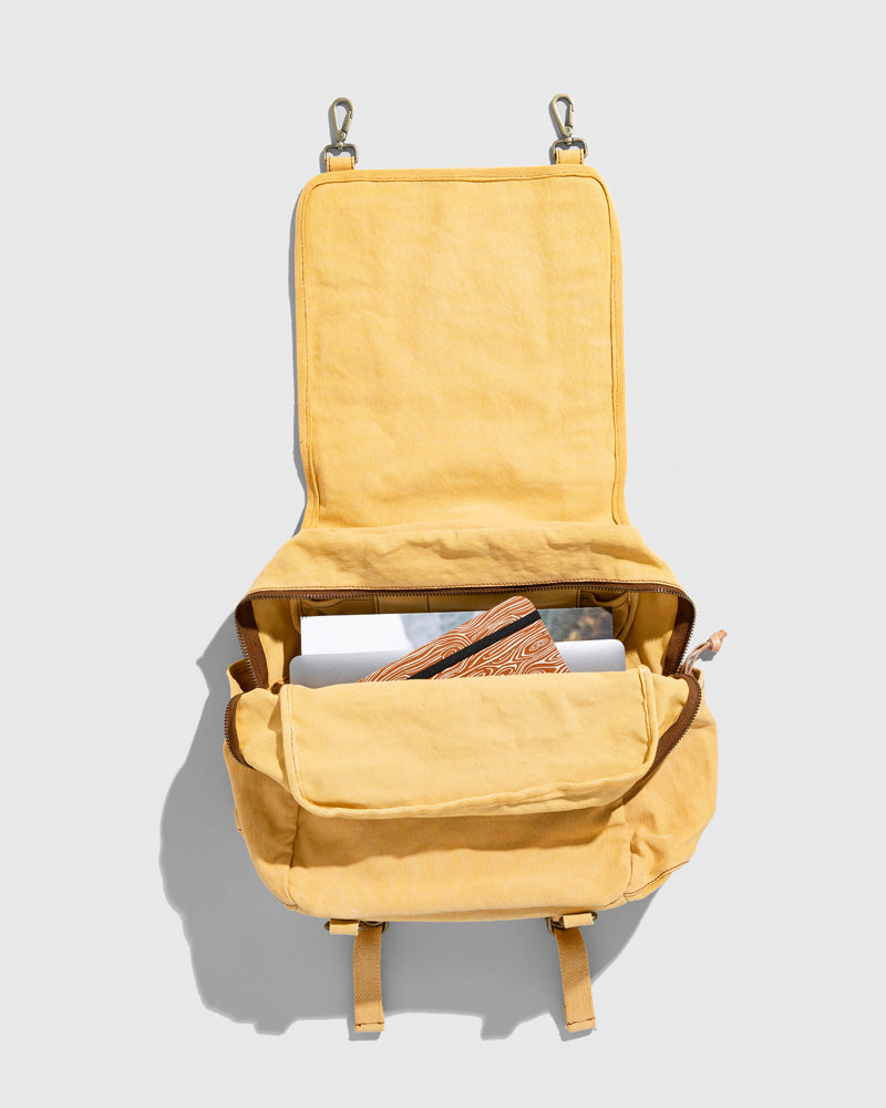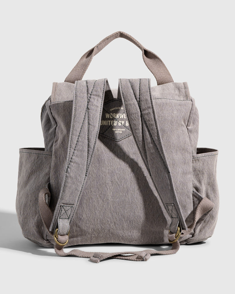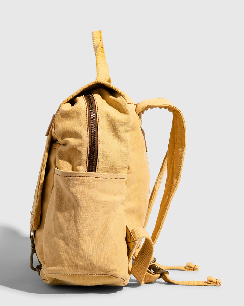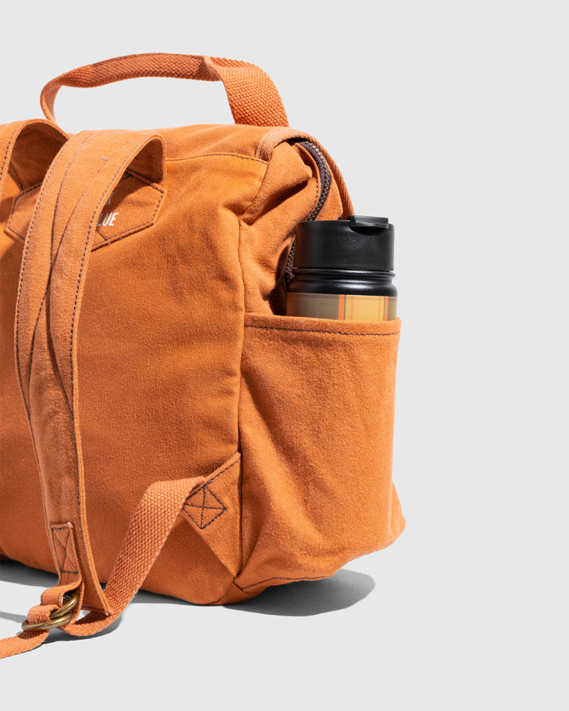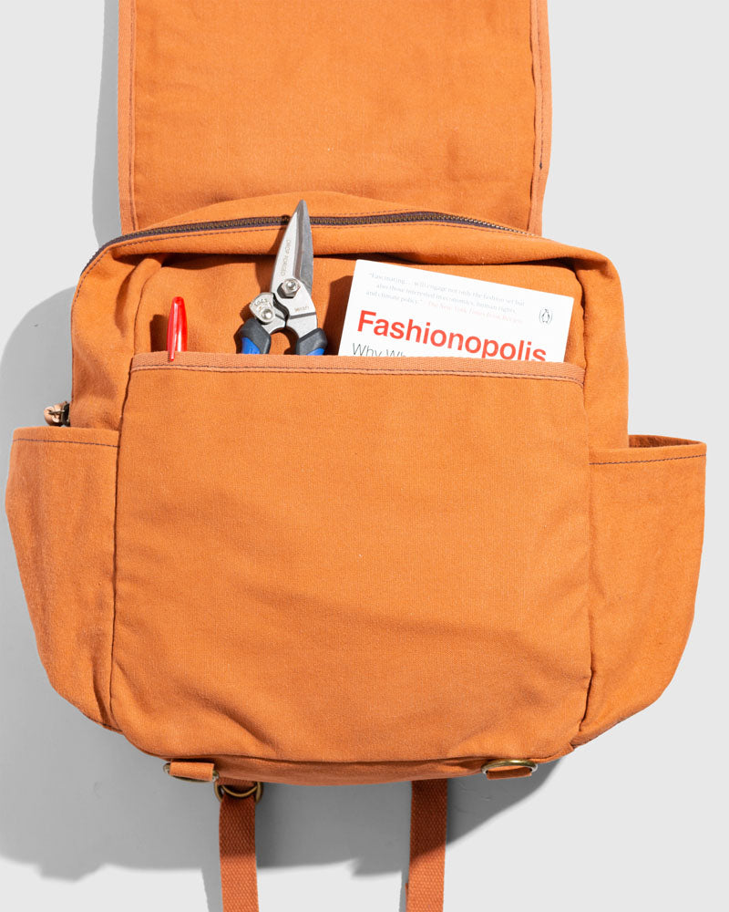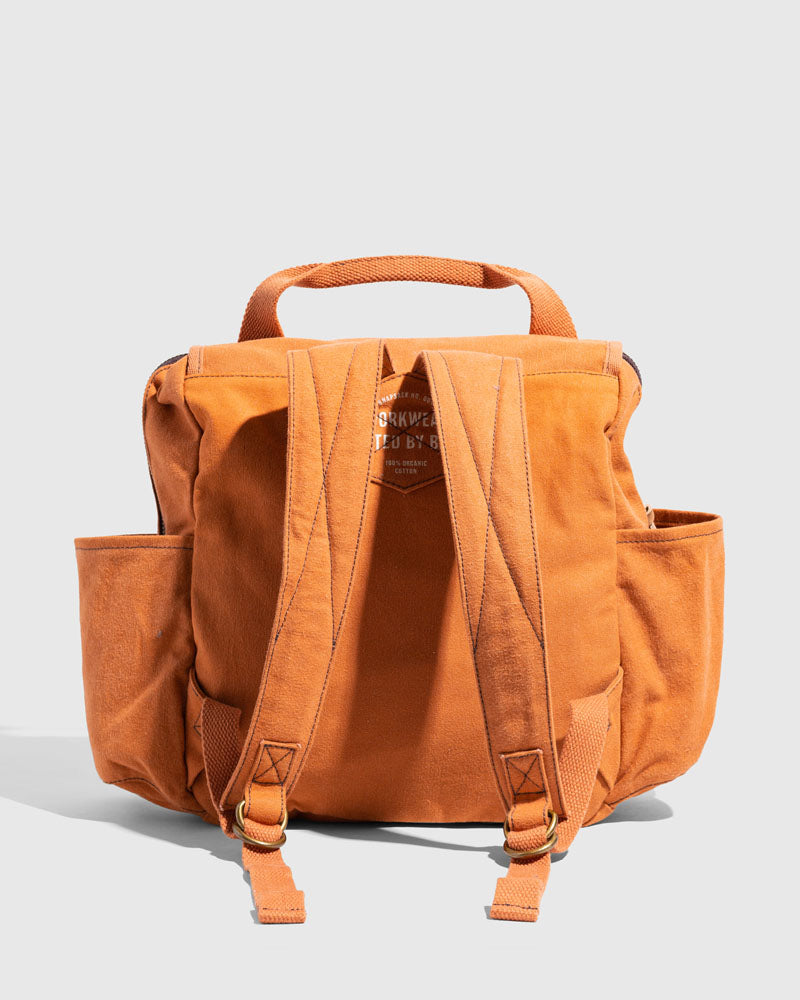 Top-notch quality, high functionality, and tons of style. The Workwear Knapsack has plenty of storage with 13L and is built to last. Crafted with a durable organic cotton canvas body with a worn-in feel, and elevated details like vegetable tanned leather zipper pulls: one of the oldest methods of tanning known to man and noted for its excellent aging and use of natural materials like tree bark.