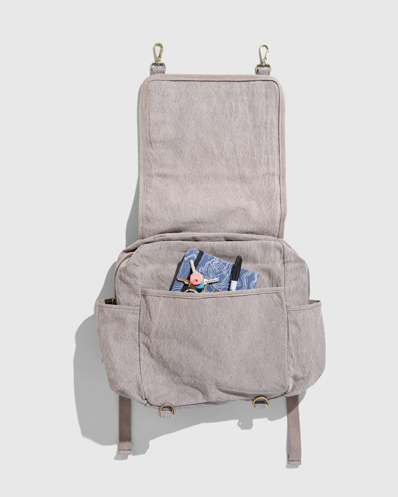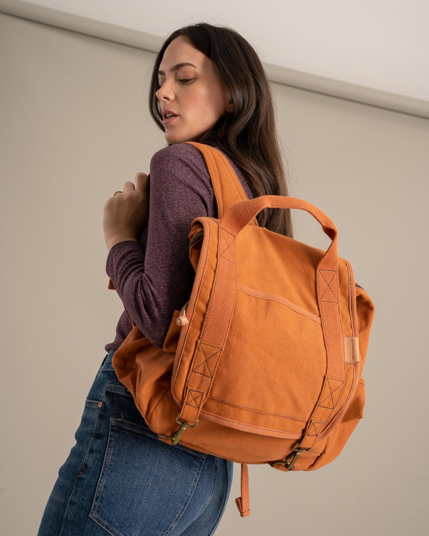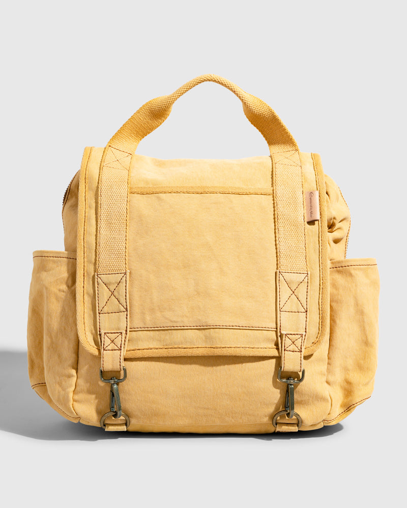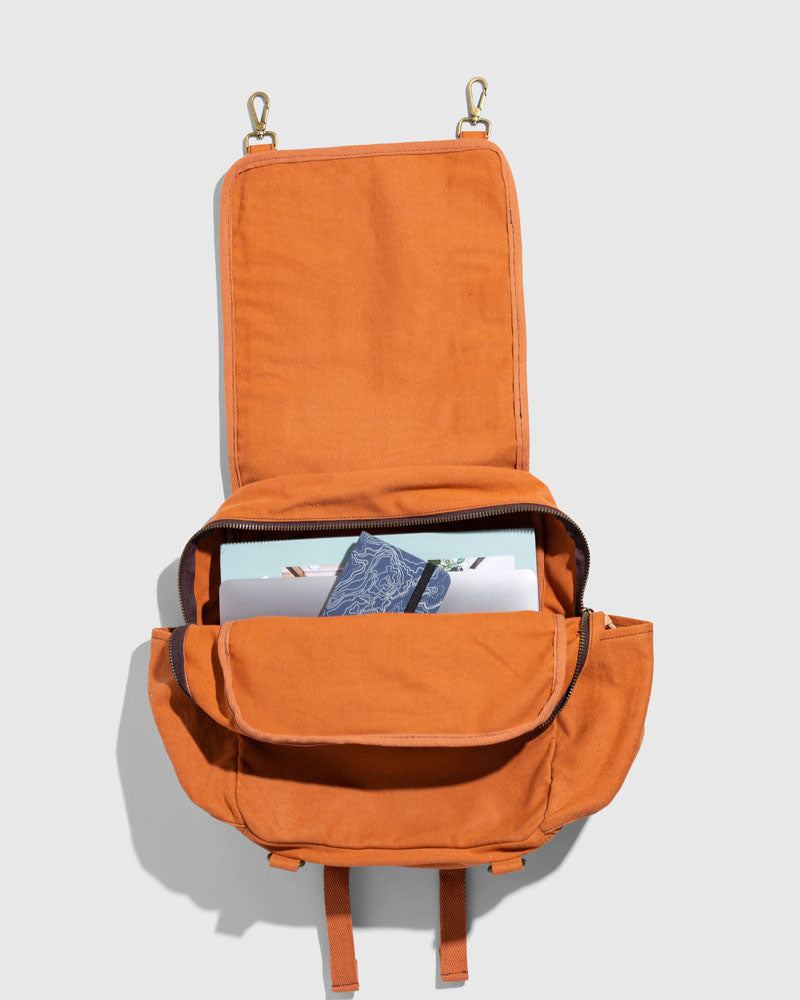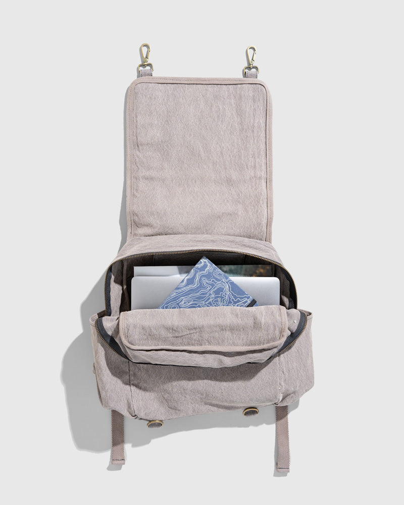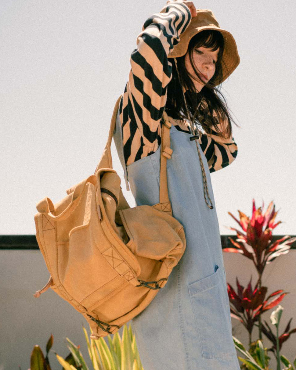 Top-notch quality, high functionality, and tons of style. The Workwear Knapsack has plenty of storage with 13L and is built to last. Crafted with a durable organic cotton canvas body with a worn-in feel, and elevated details like vegetable tanned leather zipper pulls: one of the oldest methods of tanning known to man and noted for its excellent aging and use of natural materials like tree bark.